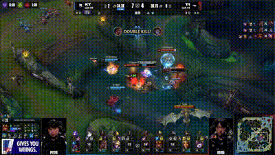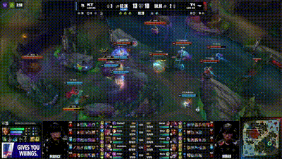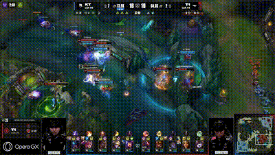 比赛第20分钟,两队在中路爆发激战,Bdd梅尔双杀帮助KT先后打出2换5团灭T1