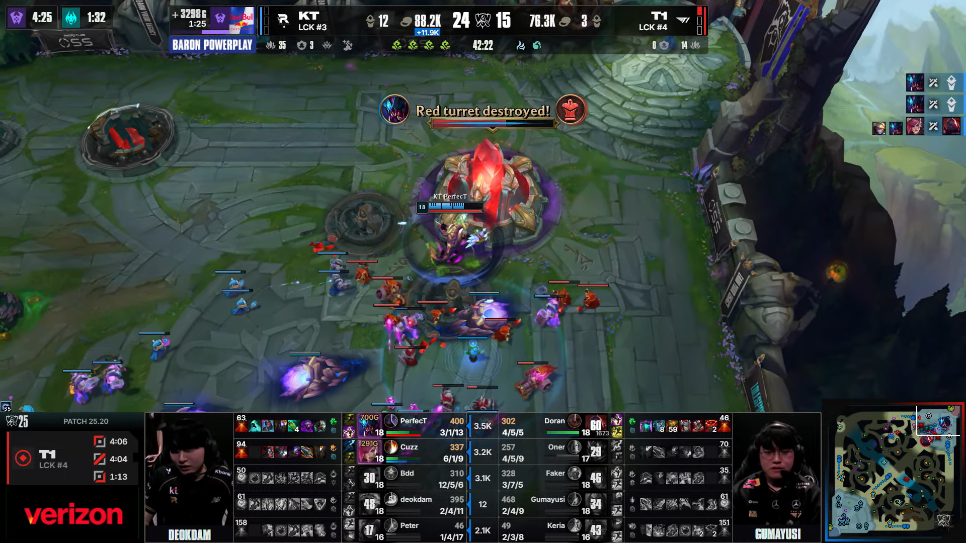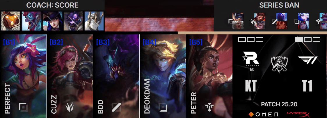 KT选用:PerfecT雷克塞、Cuzz蔚、Bdd梅尔、deokdam伊泽瑞尔、Peter妮蔻