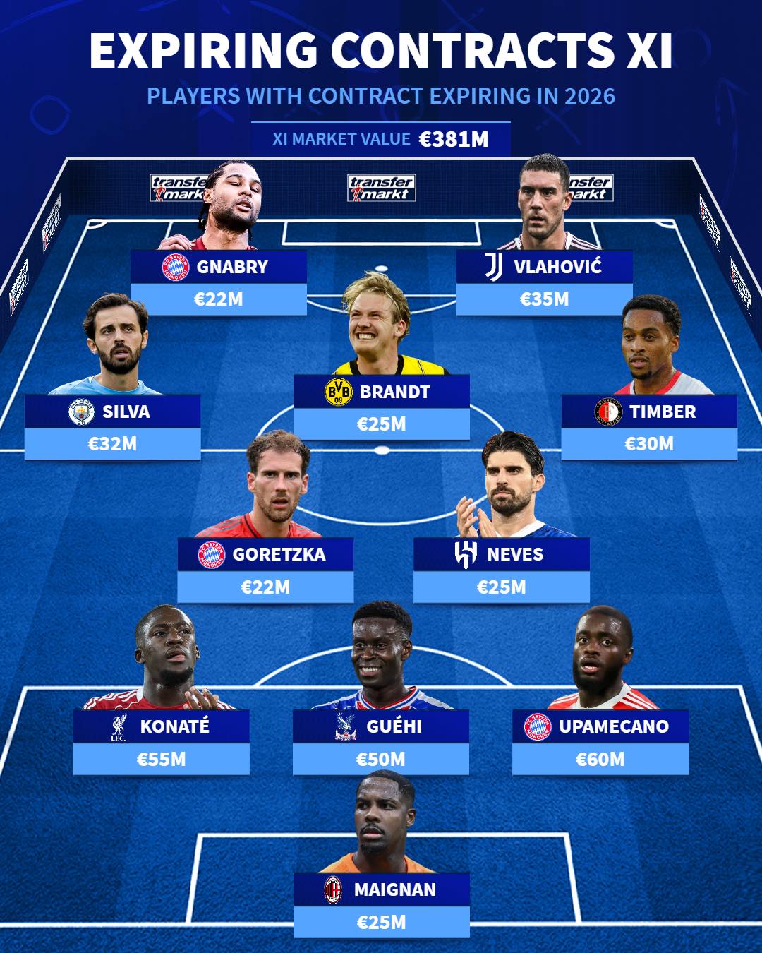 虎扑11月09日讯德国转会市场盘点了合同在明年到期的球员,并组成了一套最佳阵容。