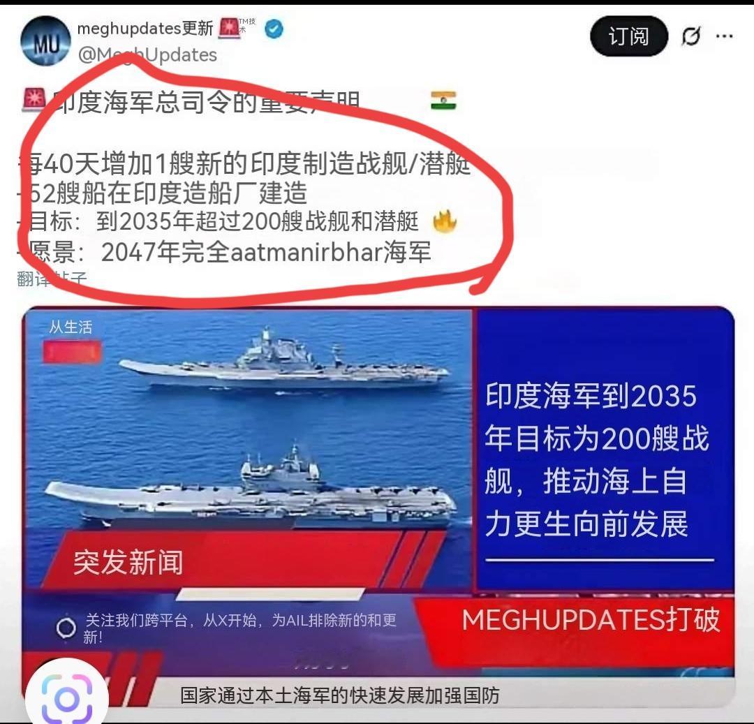 看来我们福建舰的威力有点大啊,隔着中南半岛把印度半岛轰傻了。我们福建舰这一入列,三哥就崩了,龙哥这么搞,以后印度洋怕也要改名中国湾了。 三哥海军说:不行,必须造舰,而且是加快速度地造,要以40天一艘的速度造,造它个十年,我就不信赶不上龙哥。 等我算算,一九得九,二九一十八,三九五十六,四九七十二,到了2035年我就造了两百艘! 我就问你怕不怕? [捂脸]怕了。我是真怕了。 三哥,快收了神通吧。[我想静静] 点右上角关注我,我们一起去看这个魔幻的世界