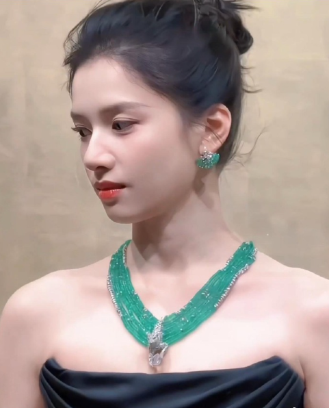 张婧仪配戴卡地亚祖母绿高珠,恕我眼拙,看着真像塑料制品,没太看出来高奢感,而且张婧仪还是太年轻了,戴不出祖母绿的那种味道。
