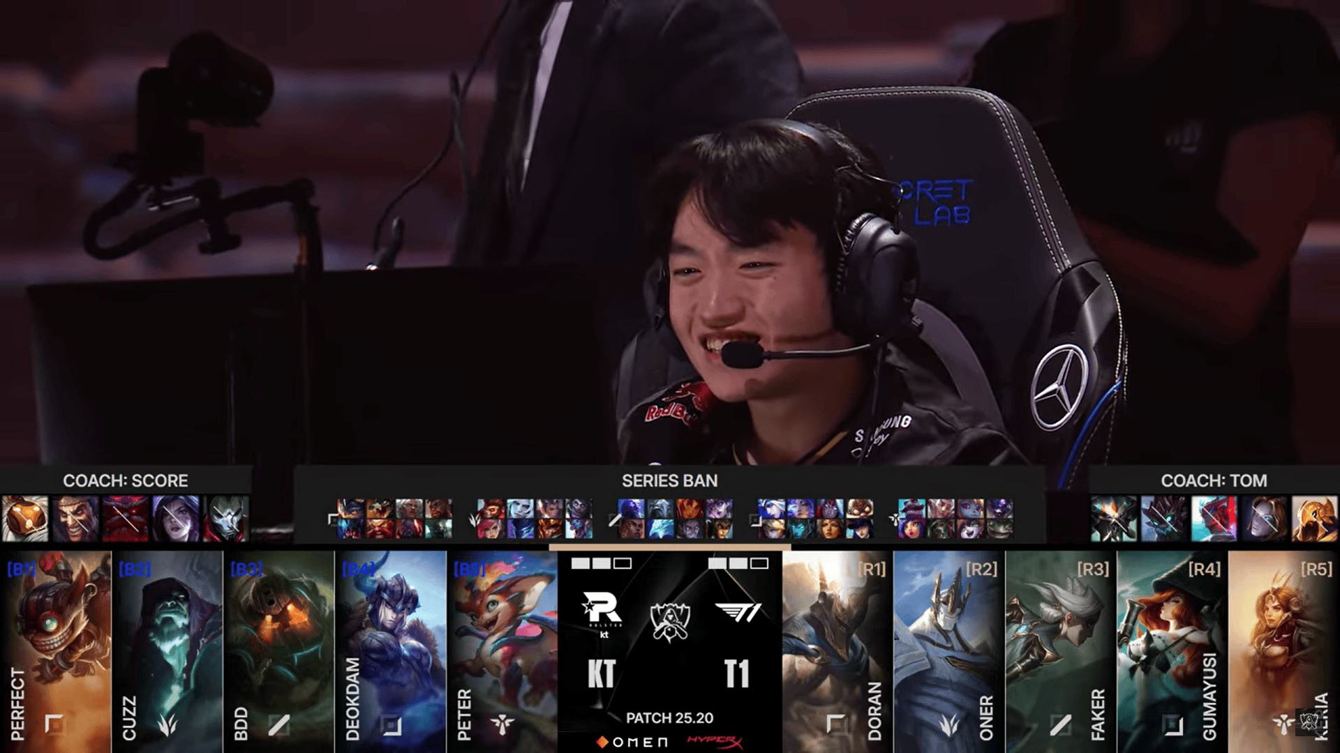 T1对阵KT决胜局BP:KT一抢炸弹人Bdd斯莫德;Doran青钢影