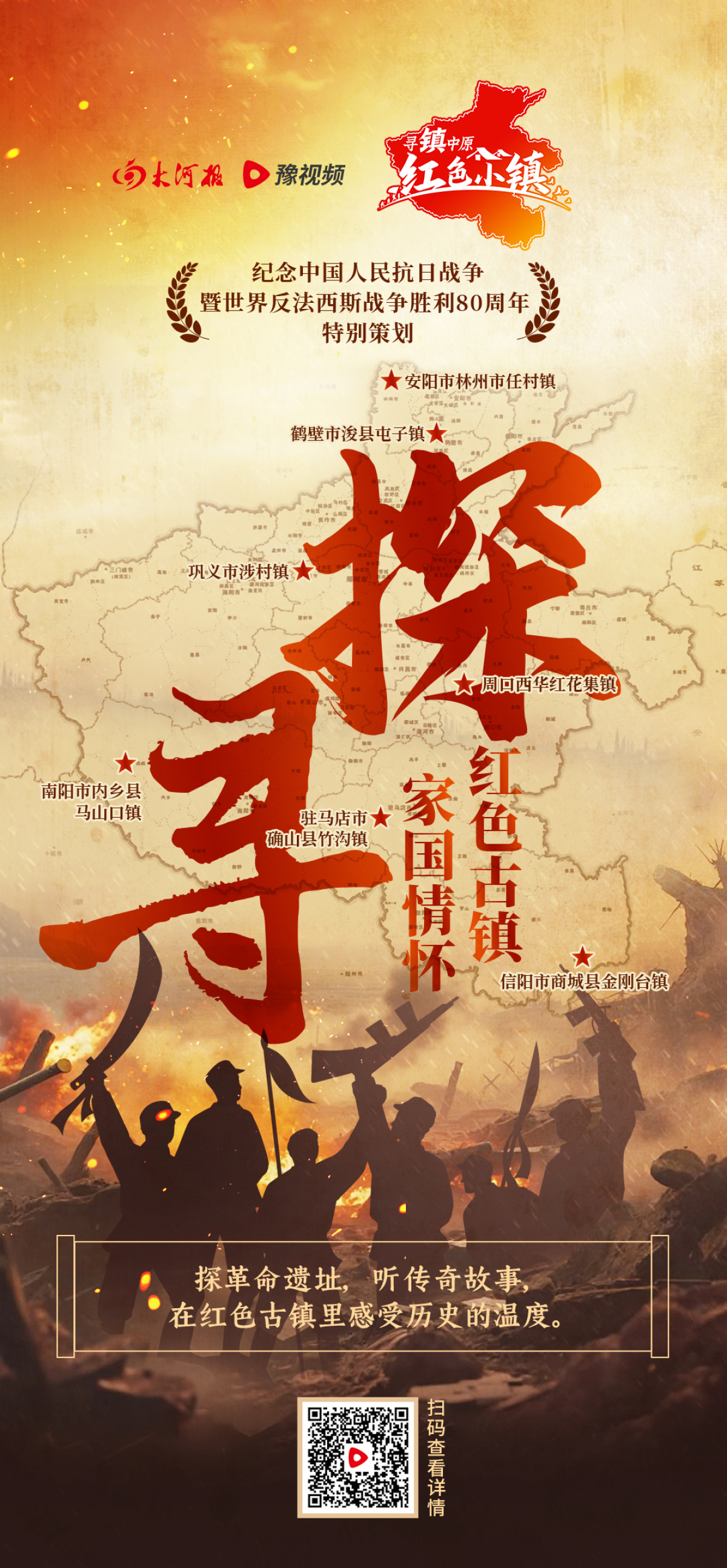 河南是一片革命热土,红色遗迹丰富,革命老区众多。今年7月份以来,结合抗战胜利80周年等重大节点,大河报以红色小镇为报道主题,派出多路记者,分别前往豫北、豫东、豫南等地进行探访,深入乡镇和村落,寻访散落在这里的红色故事,寻访当年亲历者及后代,回望峥嵘岁月,还原一段段有血有肉、激荡人心的故事。