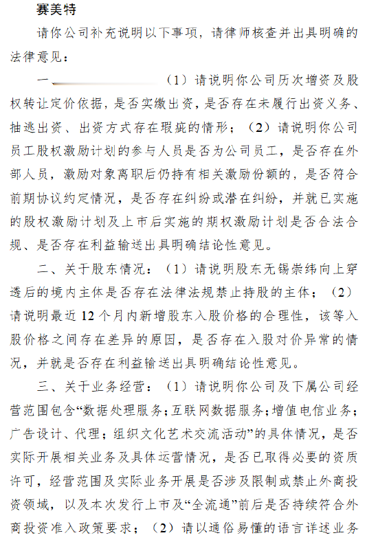 近日,赛美特收到证监会关于本次境外上市的备案反馈意见,具体反馈如下: