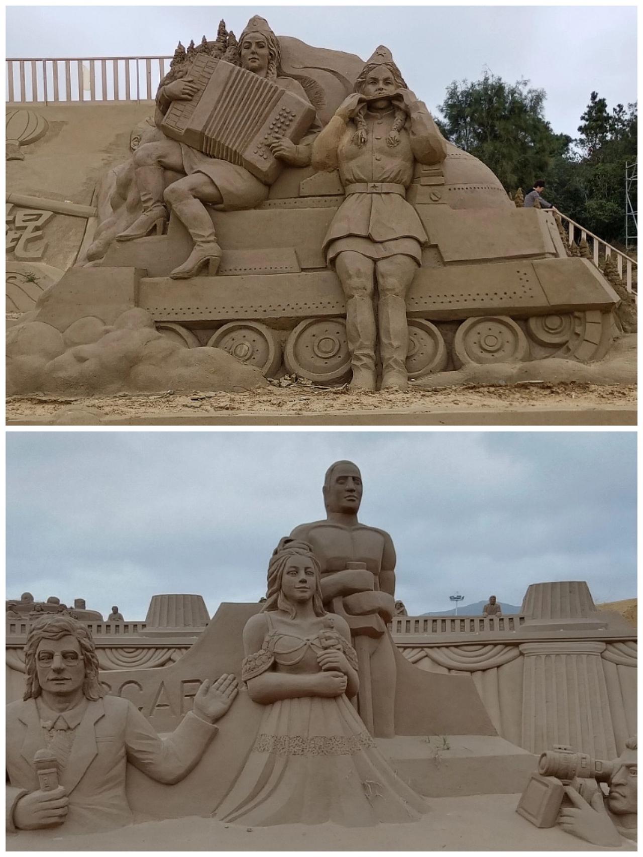 本来准备到朱家尖情人岛(图1-2)浪漫一番,碰巧不开放[捂脸],只能转到朱家尖南沙景区(图3-6),还好没令人失望;海浪声声翻滚着冲上沙滩,远方天海一线美不胜收;沙子很细,踩上去柔软滑腻,舒服舒心。 二十六届国际沙雕节的沙雕(图7-10),立体雕刻栩栩如生,艺术感很强,一座一座细细观赏很有味道。 而后去了朱家尖乌石塘(图11-12),又称乌石砾滩,因.此沙滩全是鹅卵石命名;此处海境别具一格,非常秀丽,连海浪也轻轻拍打着鹅卵石,发出柔和的海浪声。 海边 沙雕 沙滩🏖 浪漫