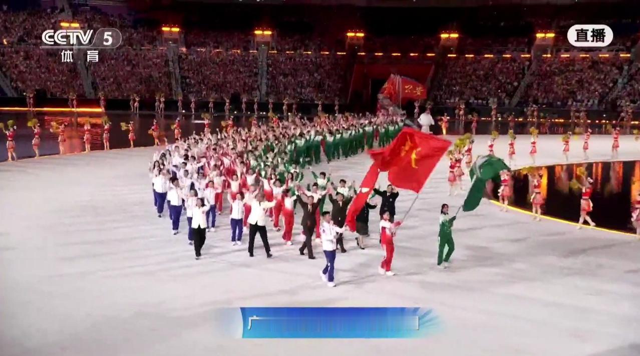 第十五届全国运动会开幕式,郑钦文担任湖北代表团旗手,刘德华、陈小春等粤港澳大湾区艺人也出席开模式!这次广东代表团人数最多,香港也是派出历史人数最多的代表团!这届全运会首次由粤港澳三地共同承办,激情全运会,魅力大湾区!