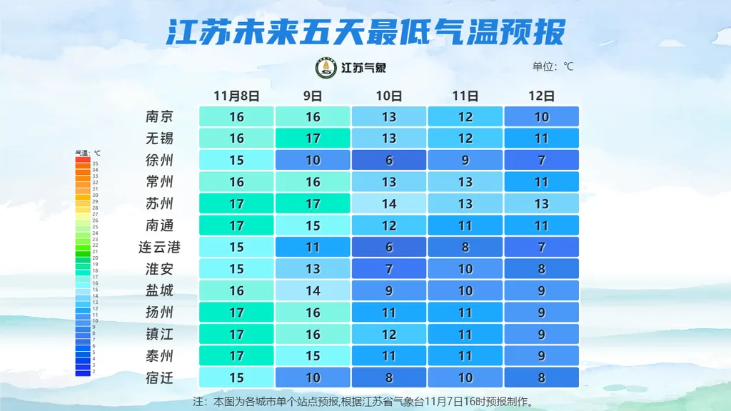 江苏最低温最新预测: