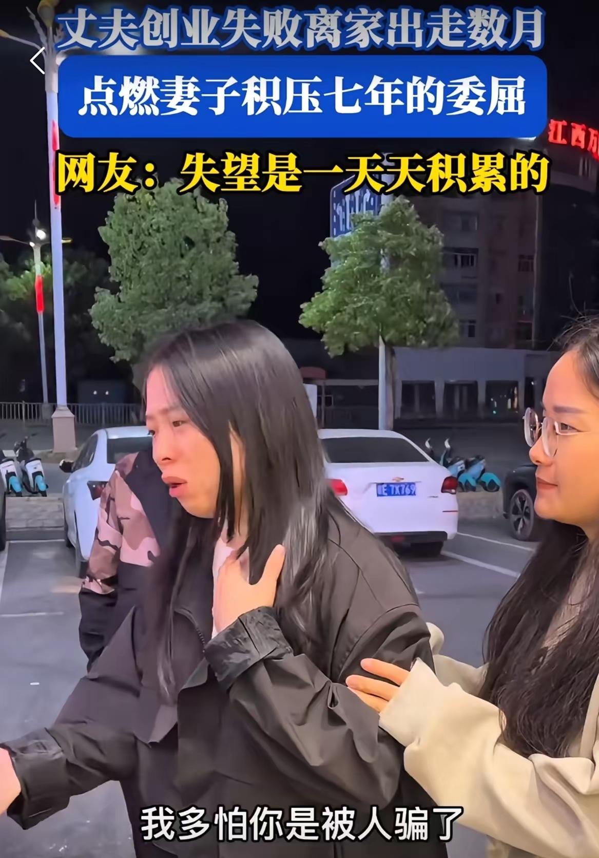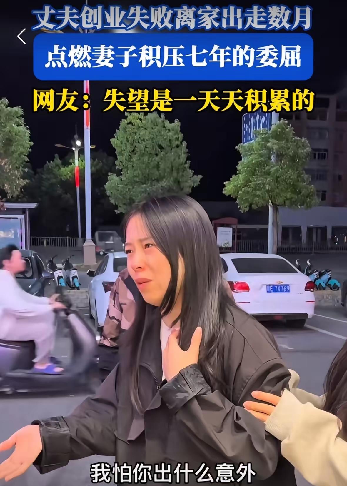 丈夫创业失败后消失数月,妻子街头偶遇摆摊的他,一句哭诉戳中无数人 创业梦碎,他没敢告别,悄无声息地离家出走,一消失就是数月。 妻子把能找的地方都找遍了,电话不接、消息不回,日子在焦虑与煎熬中一天天过,心里只剩一个念头:他到底平安吗? 直到那天逛街,熟悉的身影突然撞入眼帘——那个让她牵肠挂肚的人,正蹲在街边摆摊,满身风霜。积攒了数月的委屈、担忧与思念瞬间决堤,妻子冲上前抱住他,哭到几乎站不稳:“你这几个月去哪了?哪怕你有别的选择、哪怕你不想回头,只要让我知道你还活着、平平安安的,我就心安啊!” 谁都懂创业失败的狼狈,他或许是怕让妻子看到自己的窘迫,才选择独自躲起来舔伤口。可他忘了,对妻子而言,物质得失远不及爱人的平安重要。 沉淀疗伤无可厚非,东山再起也值得期待,但再难再苦,也别用“消失”惩罚最在乎你的人。一句简单的报平安,就能免去爱人无尽的煎熬。 这样的妻子,愿意陪你熬过低谷、不计较成败,只盼你平安。往后路长,一定要握紧她的手,好好珍惜这份沉甸甸的爱。 中年老公失业 创业失败 创业中年男人