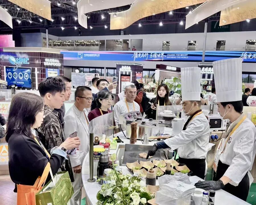 作为在上海专注精致餐饮三十余年的粤菜、潮州菜大师,杜建青早已是各大食材展的常客。“我建议只要是这个行业的人,都应该来进博会逛一逛,能让你的思路和眼界更加开阔。”他坦言,在如今竞争激烈的餐饮行业中,寻找到更优质、更有差异化的食材,是保持菜品领先性的关键。