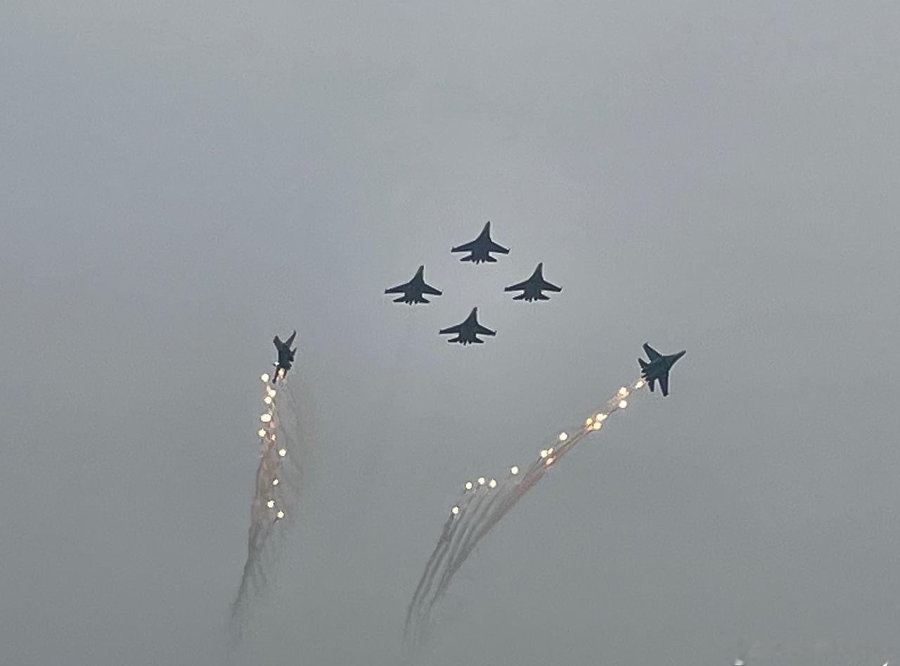 2025南昌飞行大会苏-35SL六机队形5、6号机打干扰弹开花。