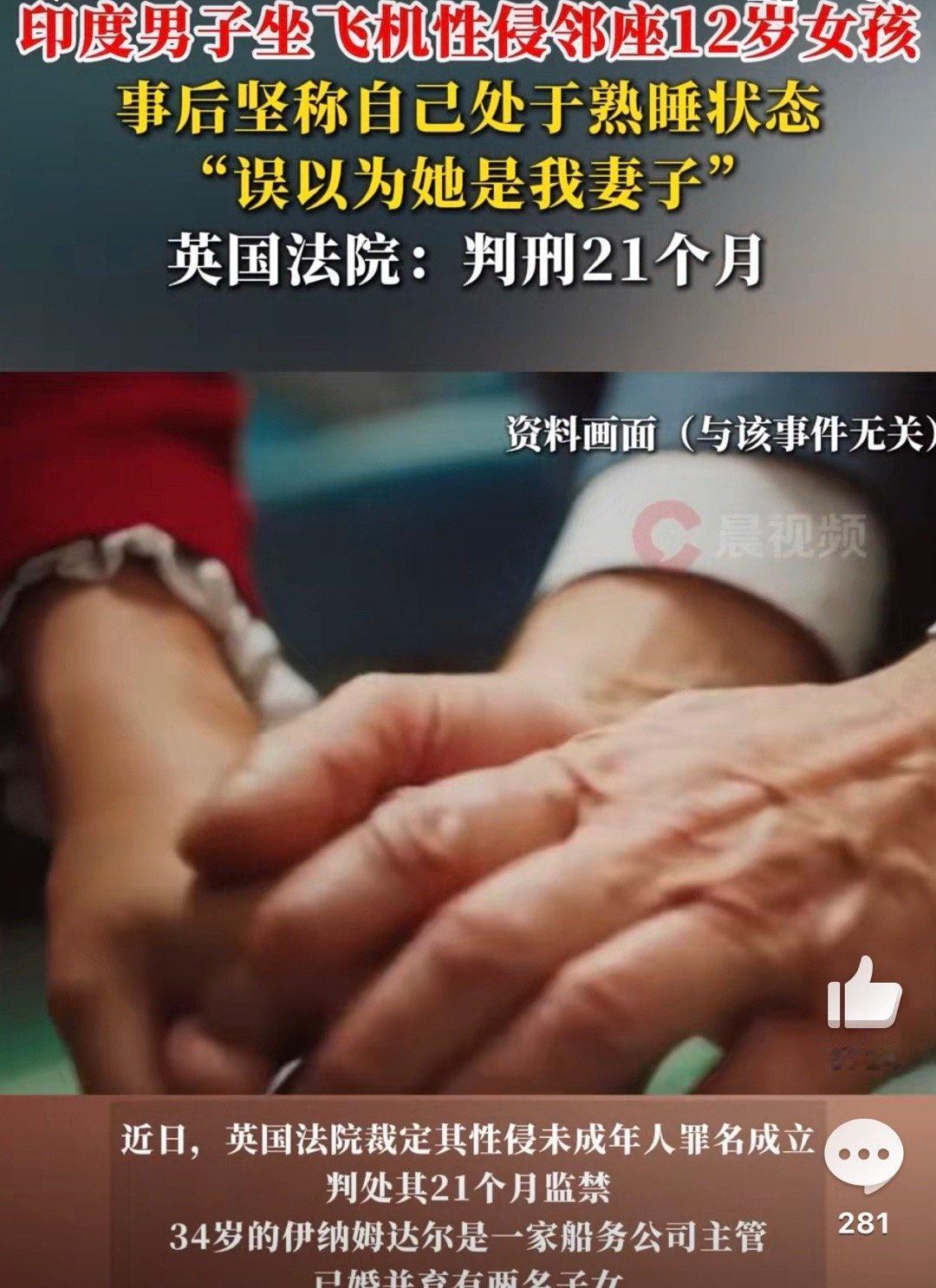 印度男子坐飞机性侵邻座女孩万米高空不是法外之地,印度男子的性侵恶行更藏着精心算计:选座试探、趁睡下手,事后以“误认妻子”“意外触碰”狡辩,荒诞又无耻。身为父亲却对12岁女童施暴,同类案件频发且量刑争议不断,更显对未成年人权益的漠视。机舱密闭空间容不得兽行,法律当亮出利刃,以重罚筑牢安全防线,让任何借口都护不住卑劣罪行。