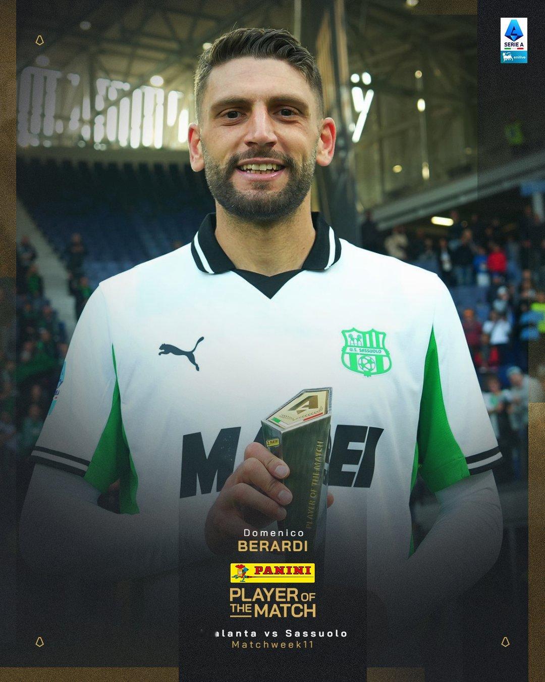 虎扑11月09日讯本轮意甲,萨索洛客场3-0亚特兰大。意甲官方宣布贝拉尔迪当选全场比赛最佳球员。