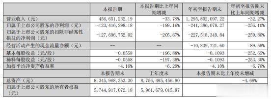 整个前三季度,公司累计实现营业收入12.96亿元,较去年同期减少32.27%;归母净利润为-2.41亿元,同比减少256.10%。