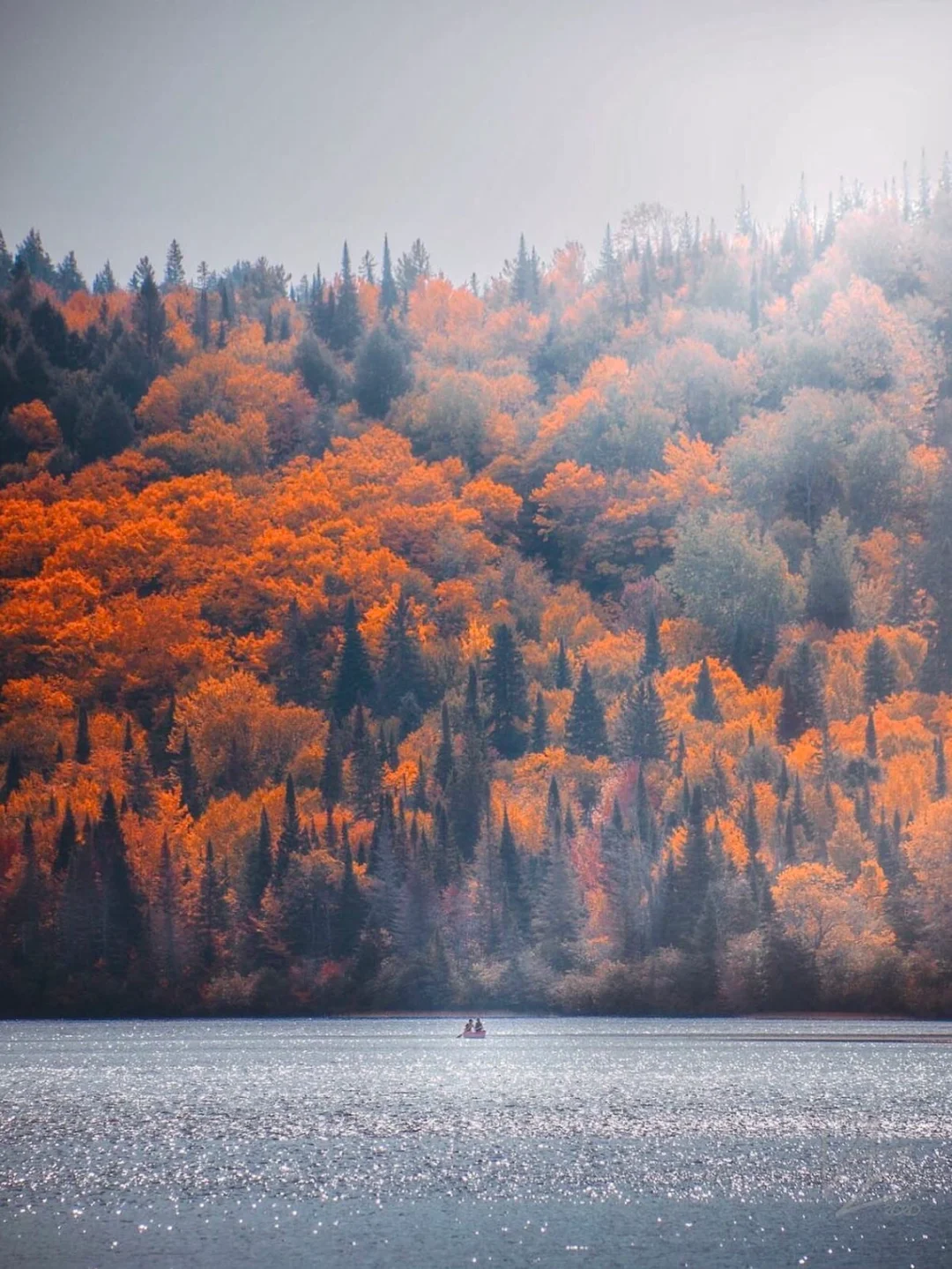 每年秋季,阿岗昆便成为加拿大最著名的赏枫胜地,漫山遍野被火红的枫叶尽染,红黄绿三色交织,倒映在清澈的河流湖泊中