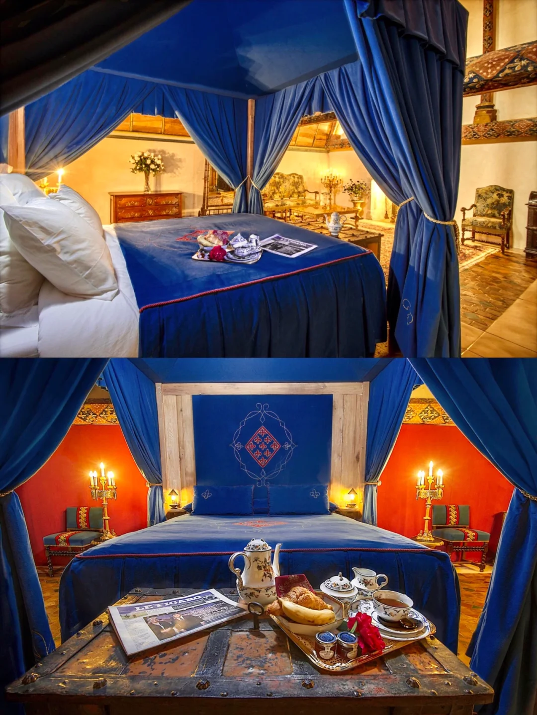 ▪️ 每一间套房都充满着中世纪风情,丝绒质感的床和家具复古气息十足