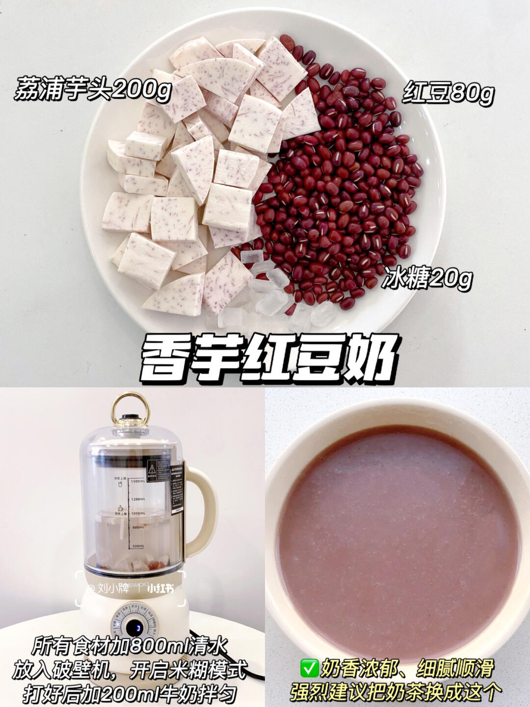 荔浦芋头200g、红豆80g、冰糖20g、牛奶200ml、清水800ml