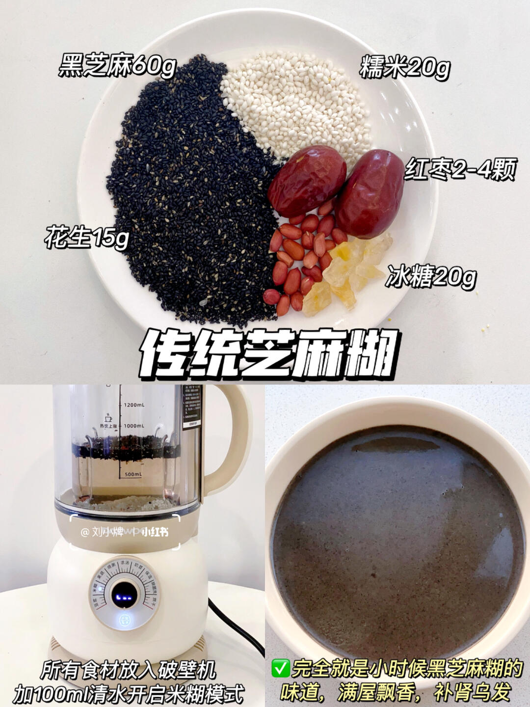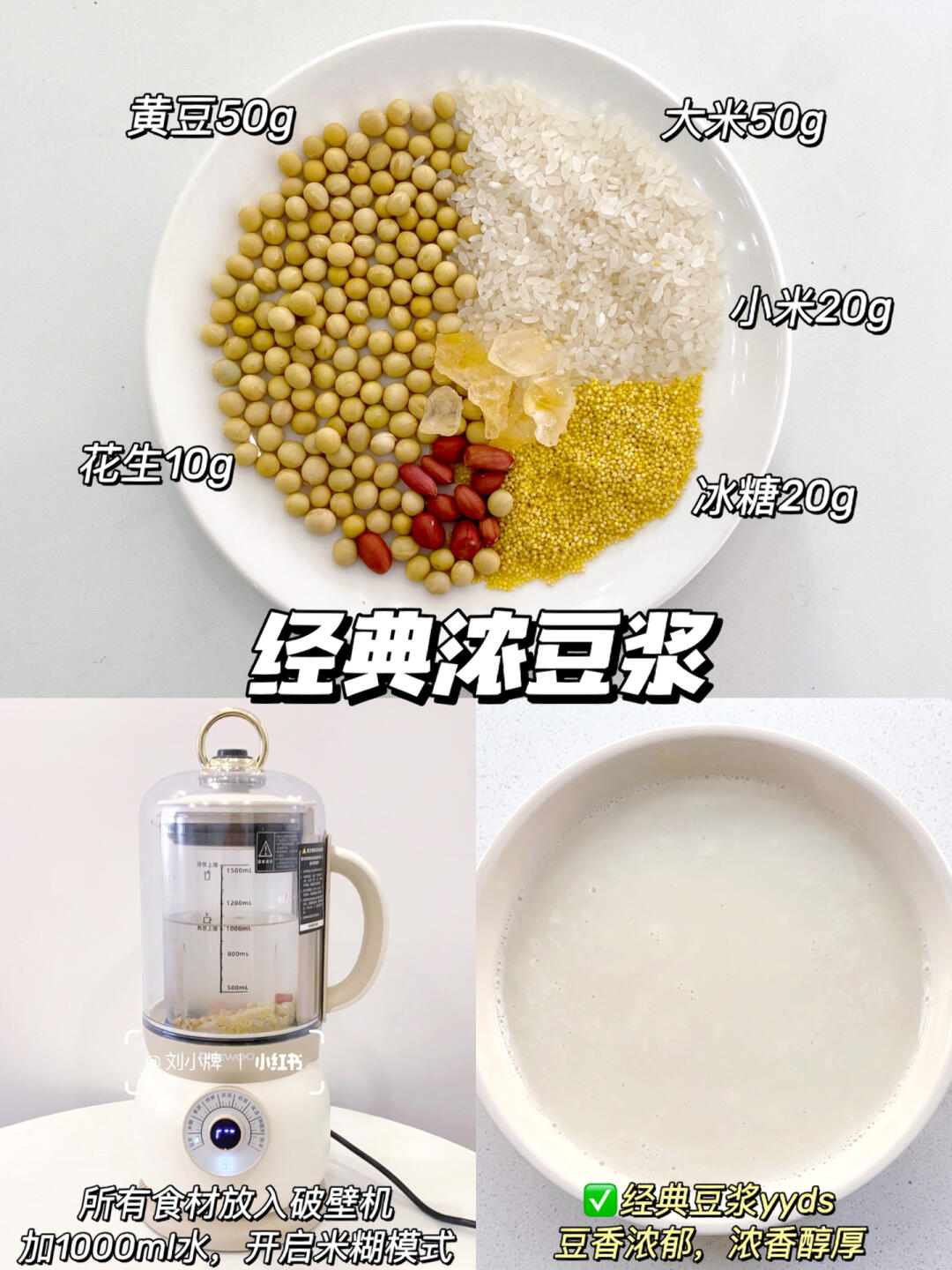 🌟所有食材不需要提前泡发,直接放入破壁机选择模式就可以,操作简单方便,搅打出来的豆浆米糊细腻顺滑。质地是略微浓稠,可适当增减水量或食材用量。