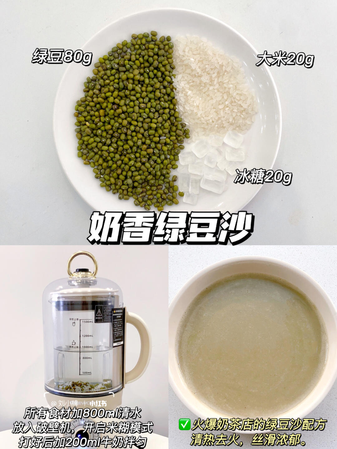 绿豆80g、大米20g、冰糖20g、牛奶200ml、清水800ml