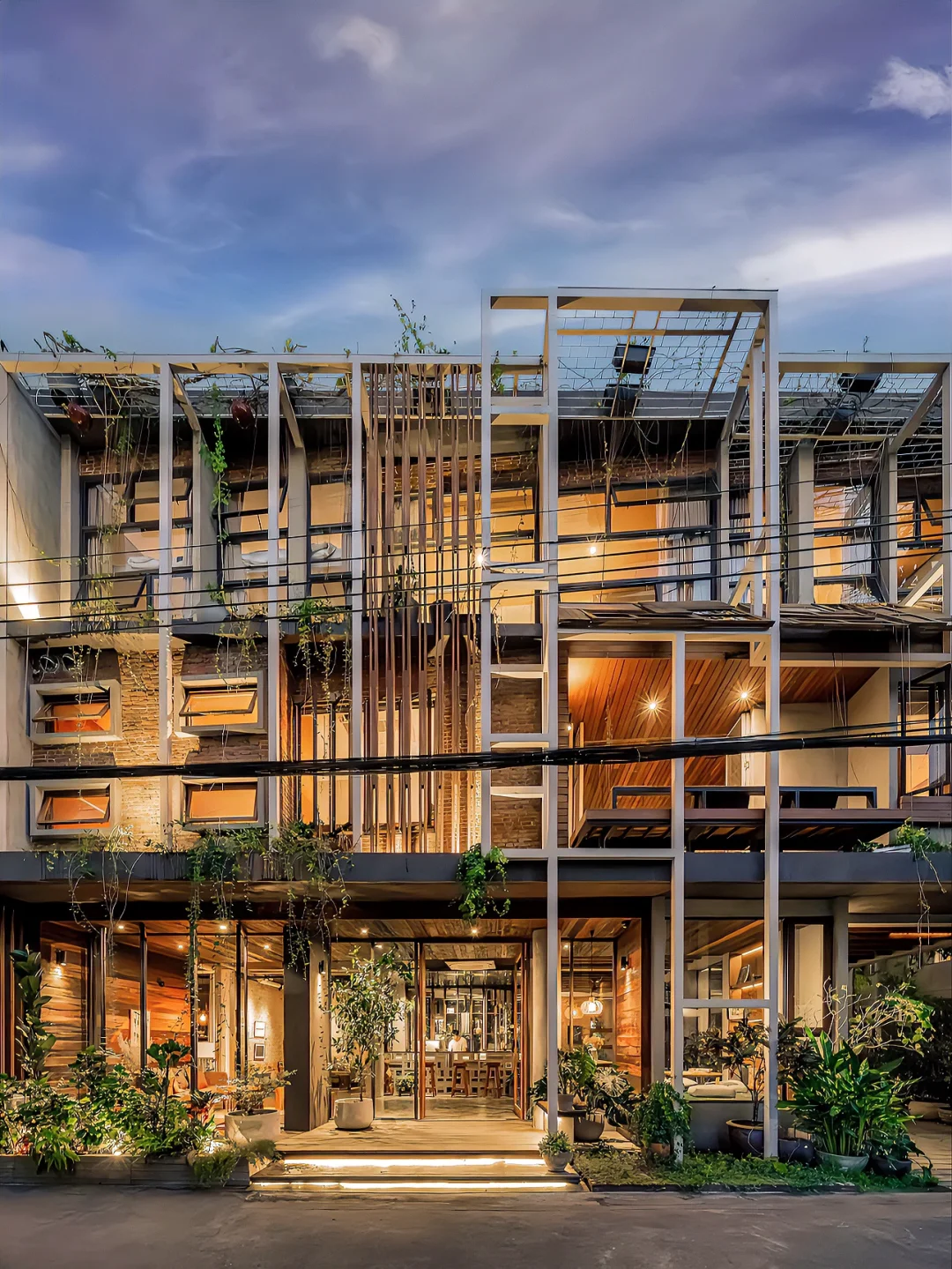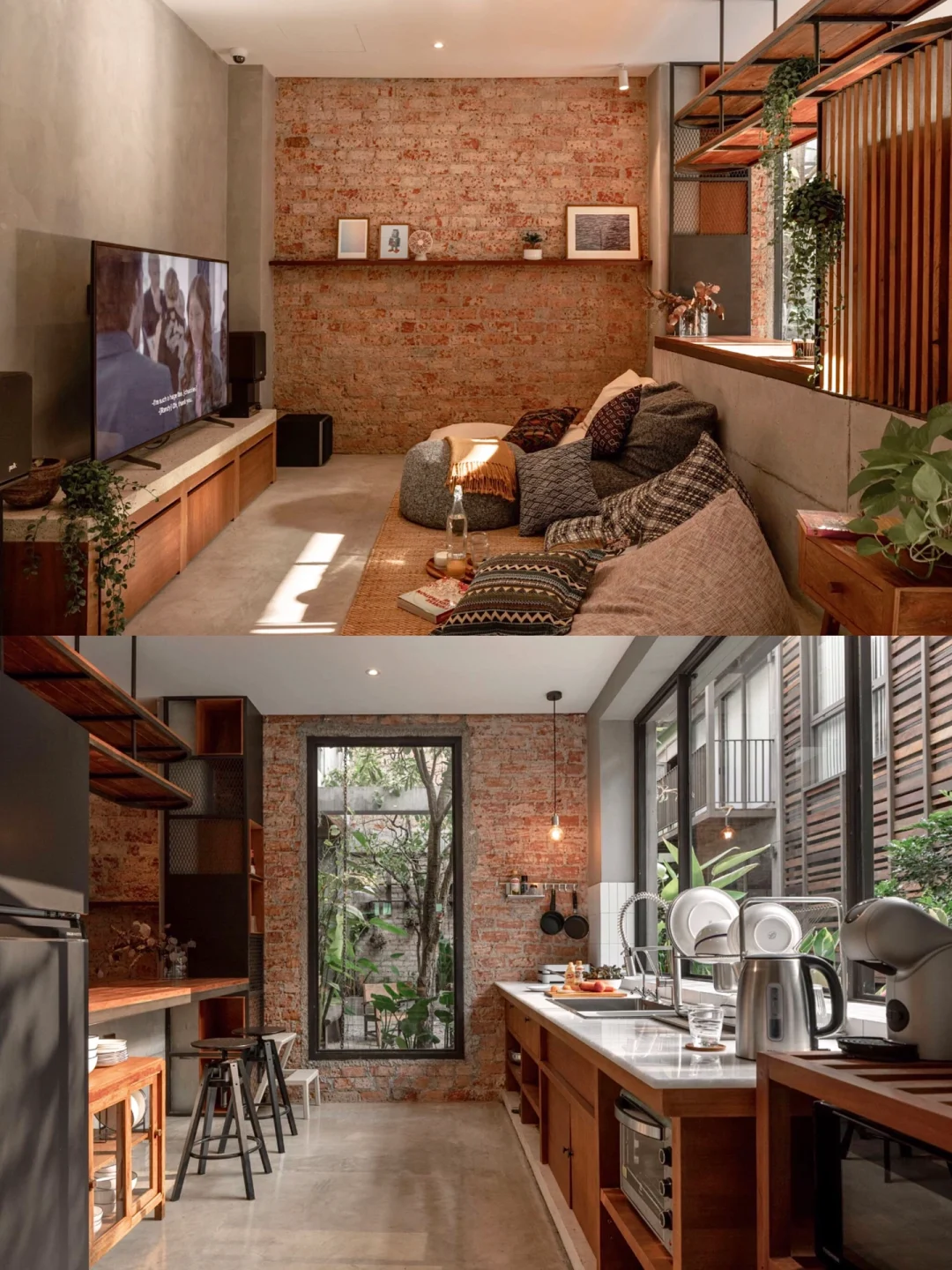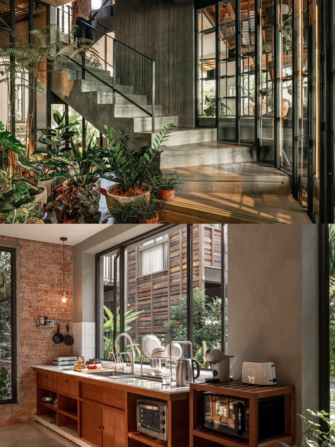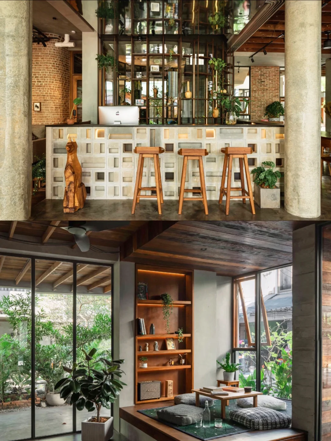 ▪️ 首先就被民宿的外观吸引了,被绿色的植物包围着,工业风十足的建筑,超级酷