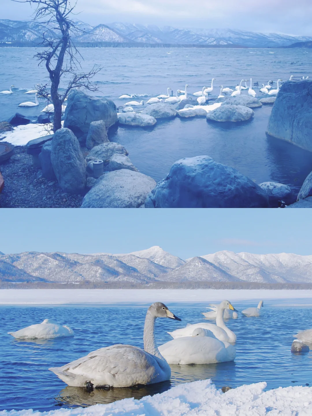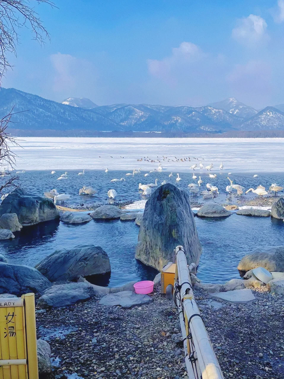🔹这里可以一边泡温泉一边眺望屈斜路湖和漂亮的天鹅,露天浴池是免费的,这是一个男女混浴温泉