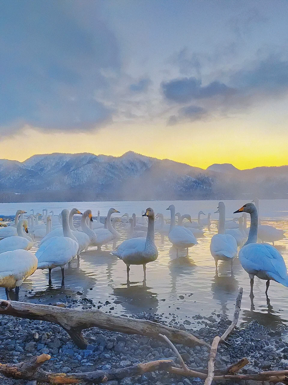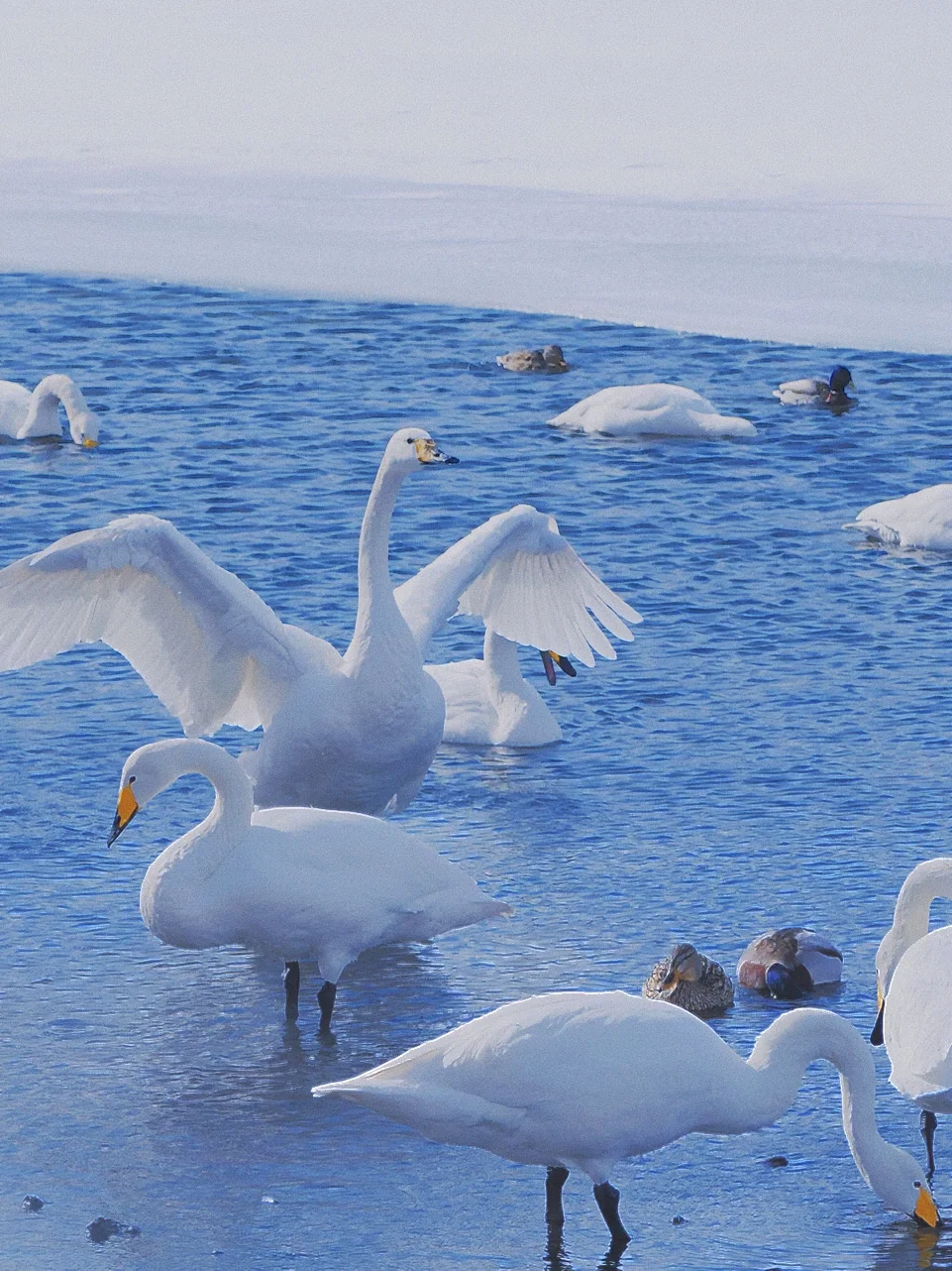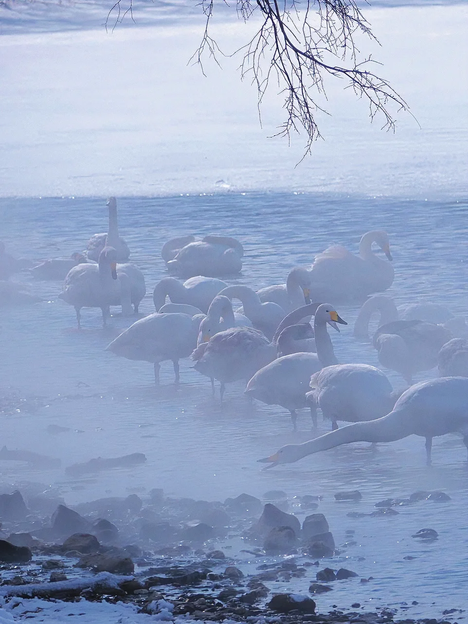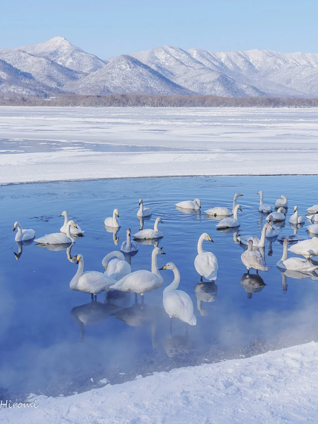 🔹冬天古丹温泉最特别的就是天鹅在池边聚集,可以享受与天鹅一起沐浴的感觉,温泉流出的地方是天鹅聚集的地方