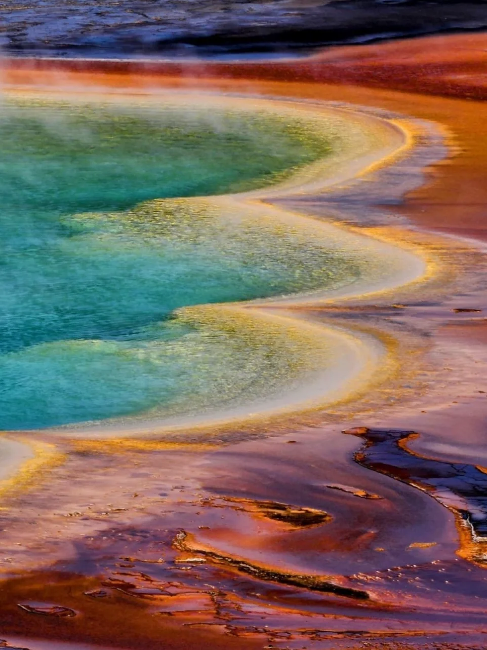 🔹大棱镜温泉是整个黄石公园最大最深的温泉,比 10 层楼还深,极热的水从地球裂缝中流出 121 英尺,到达泉水表面,所以远距离观赏是十分必要的