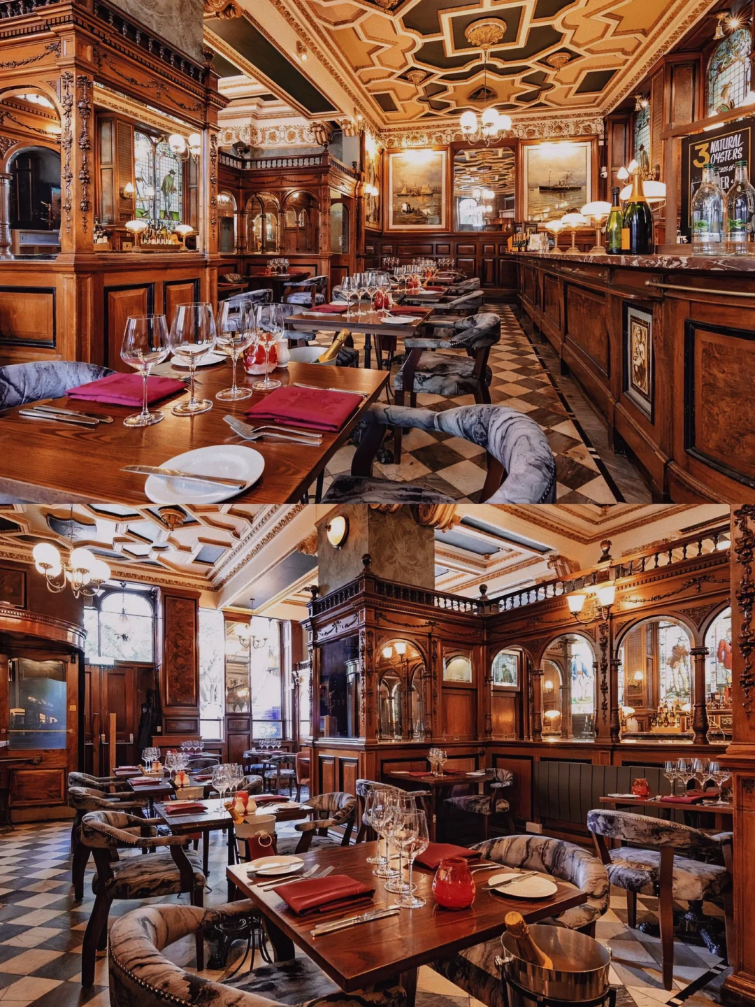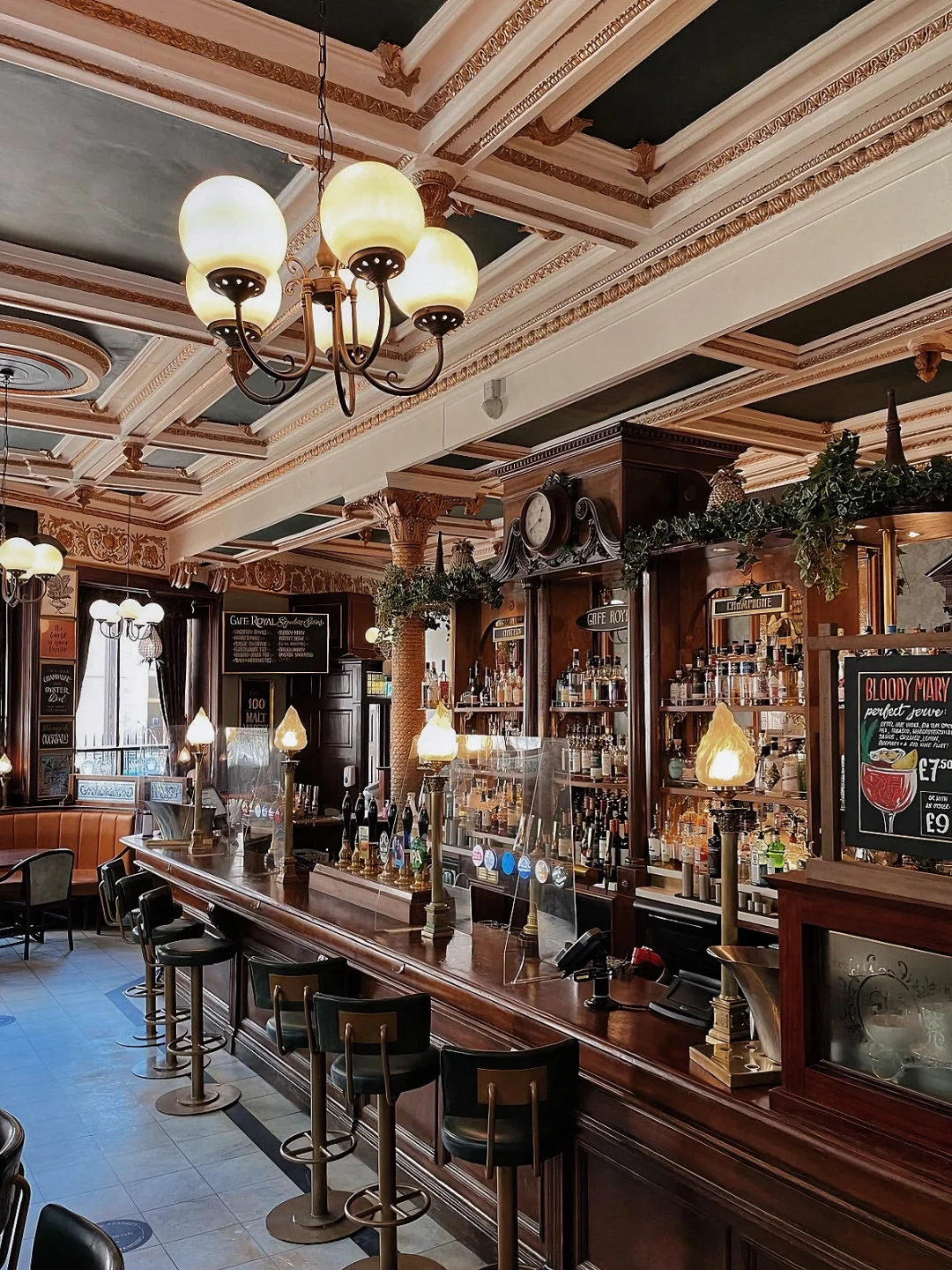 🔹在这个历史悠久且富丽堂皇的环境中喝酒和用餐,四周被原始皇家道尔顿彩陶瓷砖面板环绕,Cafe Royal 是维多利亚巴洛克风格的典范,非常适合与家人或朋友在这里小聚用餐