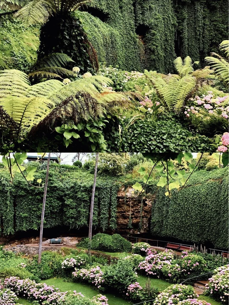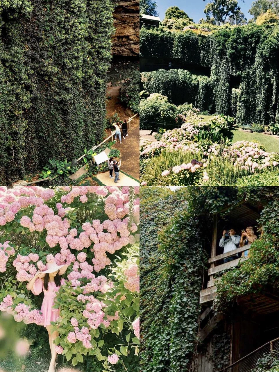 请问这是真实存在的地方吗?hoho最近发现了一个位于南澳的小众秘境,靠近维多利亚州,瀑布般的常春藤从地面悬挂而下,底部则有数级阶梯,错落有致的种满了各式花朵,以粉色绣球花为主。岩壁的缝隙里还住着负鼠~