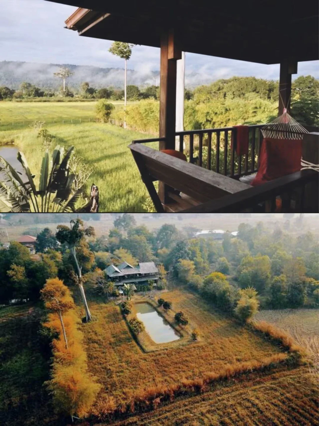 ▫️ 民宿周围是大片稻田,风景很棒!还能看到大象在附近喝水