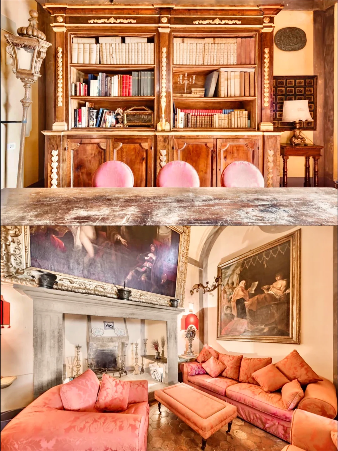 ▪️外观和室内皆以粉色为主的巴洛克风别墅,坐落在山崖之上,风景绝美,可以俯瞰蔚蓝大海