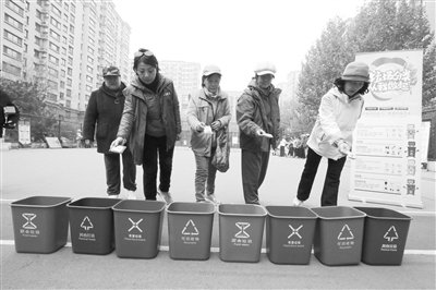 近日,丰台区南苑街道京粮悦谷社区开展垃圾分类趣味活动,居民们通过游戏,将印有不同垃圾图案的卡片投入相应的分类垃圾桶模型中,在欢乐的游戏氛围中进一步筑牢垃圾分类意识。