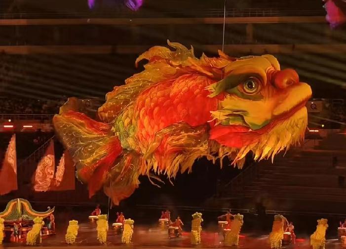 跟儿子一起看全运会开幕式, 当这条鱼出来的时候,儿子大声喊到, 妈妈,你看鱼在天上飞,我以为 孩子说胡话呢,定睛一看,确实是的。 去查了一下,不查不知道,一查吓一把我惊呆了,原来这条鱼有这么长的历史。 它叫鳌鱼,源于广东,已有几百年历史,它是龙头鱼身,龙头代表尊贵和力量,鱼身则代表着富足,我们过年所谓年年有鱼,就是这个意思,一起寓意吉祥。 这条鱼美轮美奂,3d的效果也没这么好啊,广东人民会的东西可太多了。 对传统文化的宣杨还得看广东,每年赛龙舟,春节期间的传统项目,广东基本都还保留着。 全运会开幕式都这么好看,更期待接下来的比赛了。