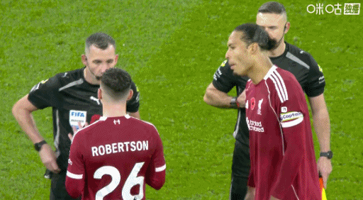 范戴克进球被吹!半场结束后,罗伯逊找裁判理论