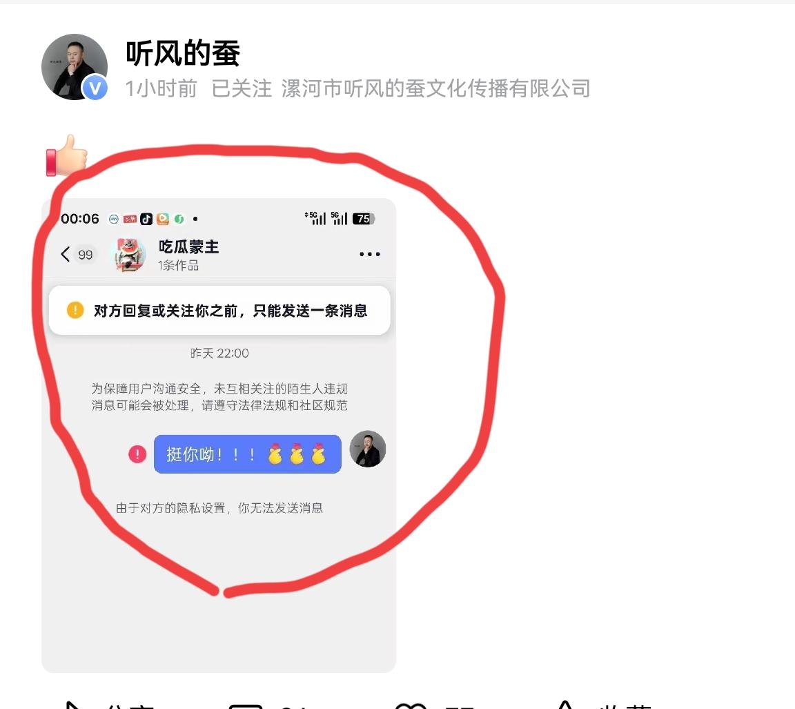刚刚千万博主下场力挺吃瓜盟主, 在别人都害怕被网路攻击的时候,这个男人站了出来。 谁也没想到平时最儒雅的听风的蚕,关键时刻却是全网最硬核的男人。 没有任何掩饰,一句朴实的“挺你”在此时胜过千言万语。 值得注意的是,这俩人不是互关好友,这就更显出听风的蚕人品贵重。