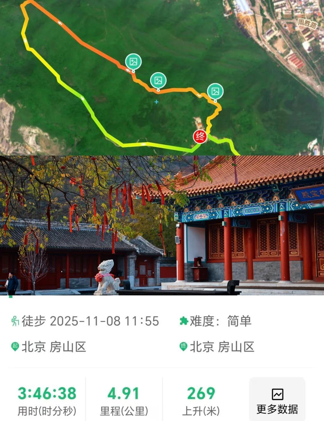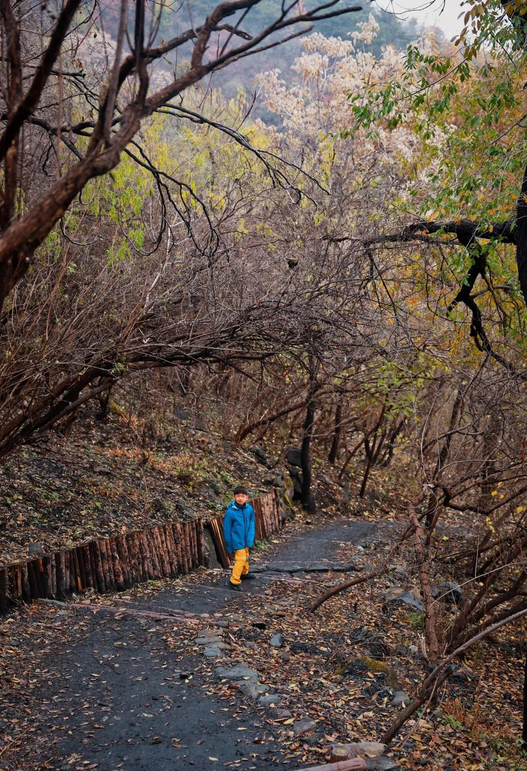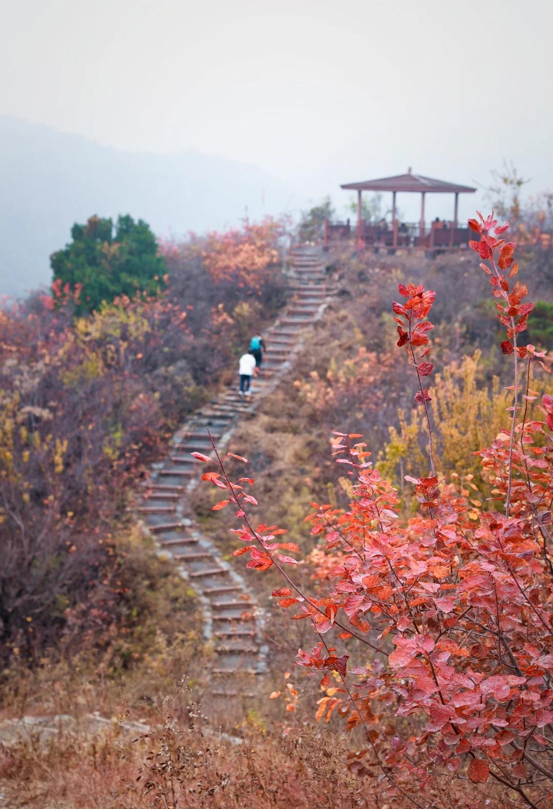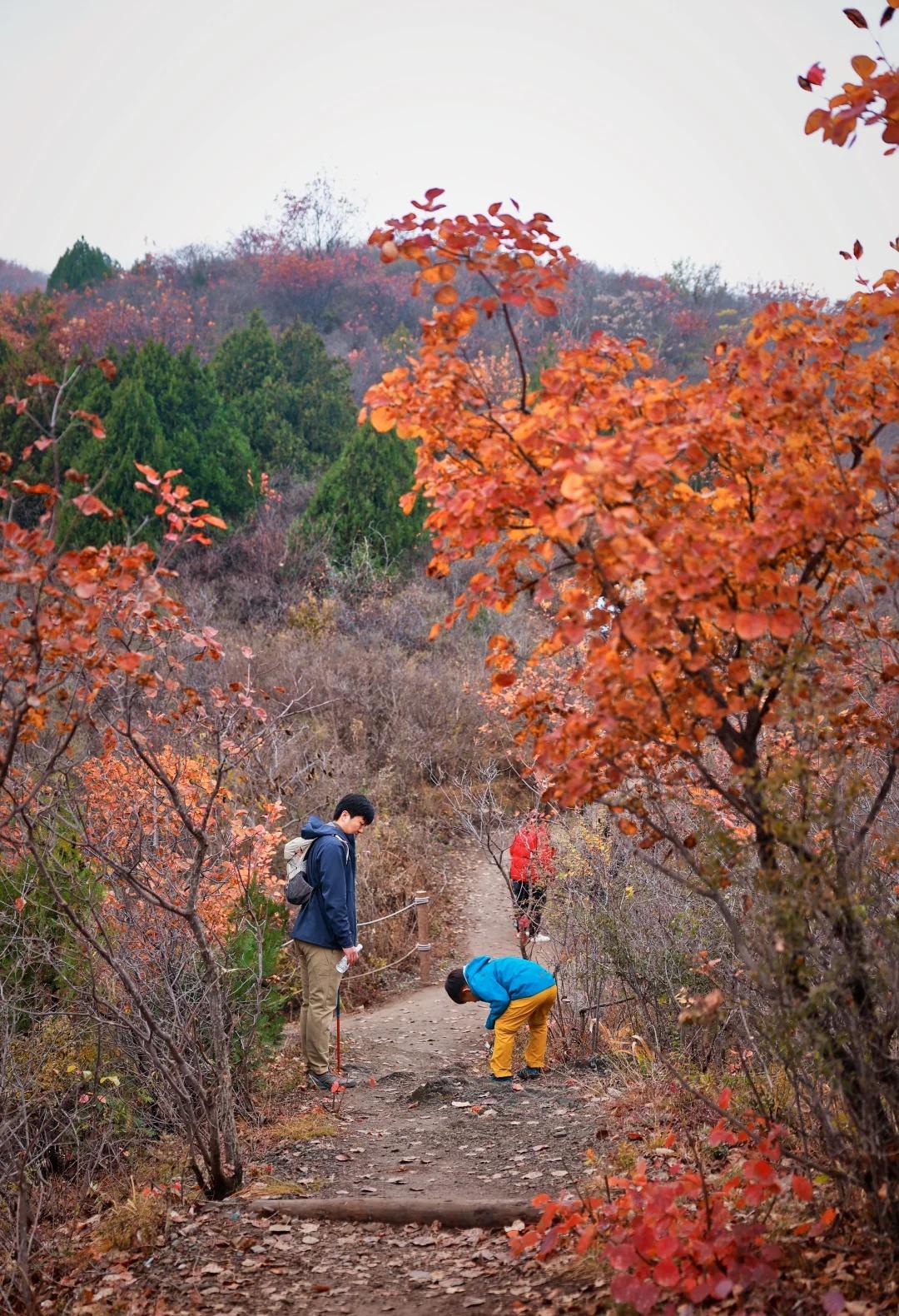 秋景倒计时💨房山龙骨山小环线错峰赏秋 房山西山登峰揽胜步道周口店址段 这是这次徒步路线的全称 红叶虽然掉的七七八八 但是刚下完雨山里清新空气很舒服 胜在整个上脊线非常美 可以一揽大美房山 秋景倒数计时,明日可冲! . 🉑导航永寿禅寺,停车10元/次,建议直接开到永寿禅寺门。 . ⏺路线介绍 可以走4/7/12公里环线,我们走的4公里逆时针 💨4km 小环线|228m 爬升|土路+台阶混搭 🍁 还有些黄栌叶子,下山时可以摘黑枣 . ➡️7公里就是把车停在山底停车场,4公里是把车停在永寿禅寺门口,门口如果没位置可以继续向前开1公里,这里有停车地,还有卖咖啡车,停在这里就顺时针走了。 . ➡️其他说的 ✔️防滑徒步鞋,雨后略滑 ✔️ 带食物,山上🈚️售卖点 ✔️停车场入口处有WC,山上无 . 徒步丈量世界 十一户外漫游 徒步赏秋好去处 一起赏秋景 又到登山赏红叶的好时节 红叶 又是一年红叶季