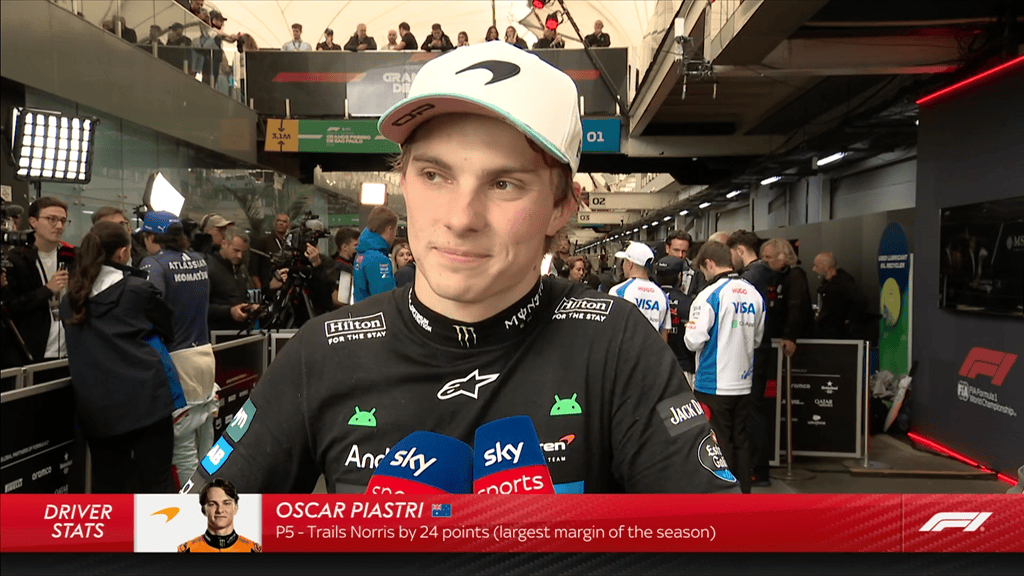 虎扑11月10日讯在F1圣保罗大奖赛中,在一场因与基米-安东内利相撞而被罚10秒后,最终获得第五名的比赛后,奥斯卡-皮亚斯特里认为,事故发生当时他很难找到位置全身而退。