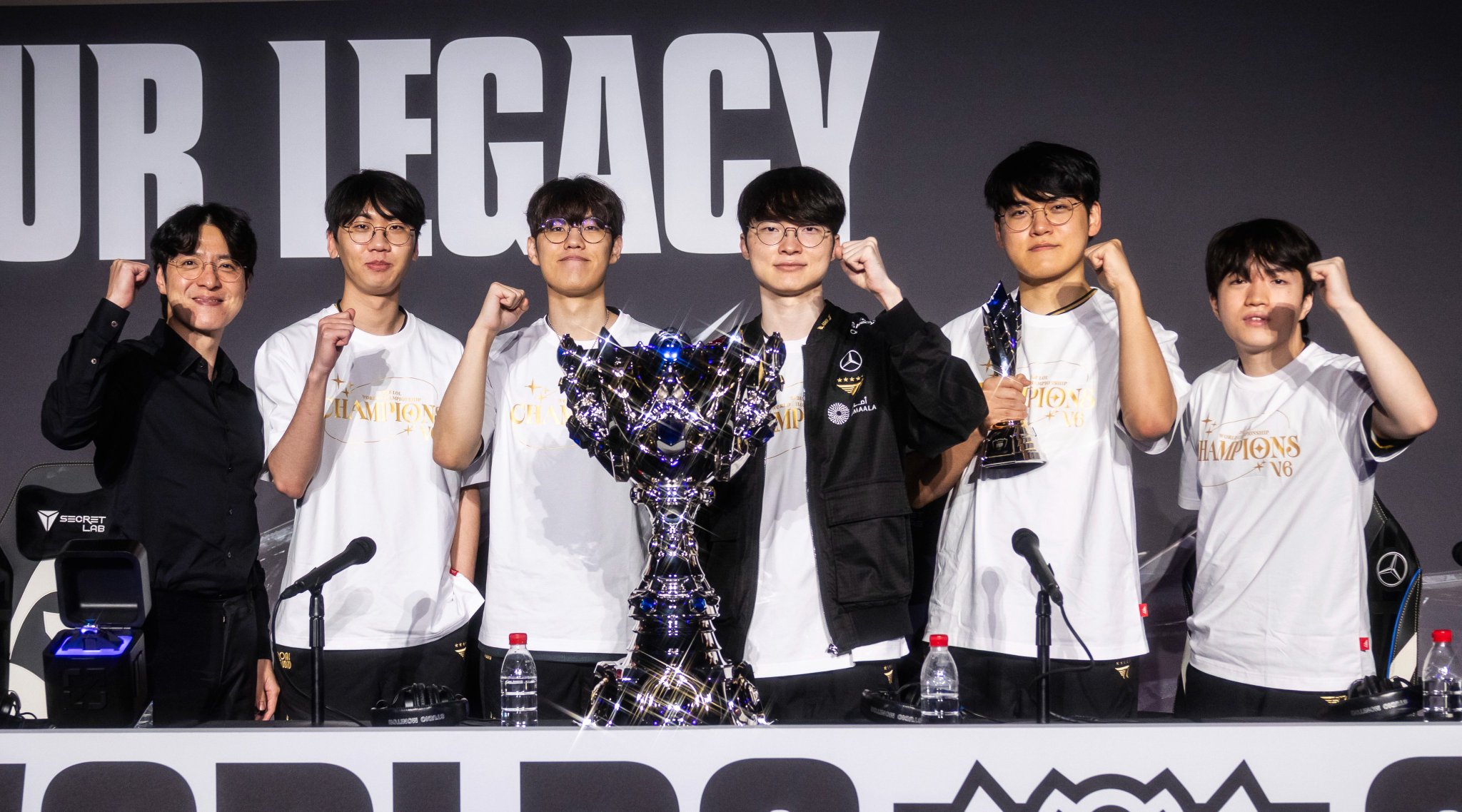 LOL官方分享T1队伍照片:一张照片里面有21个全球总决赛冠军
