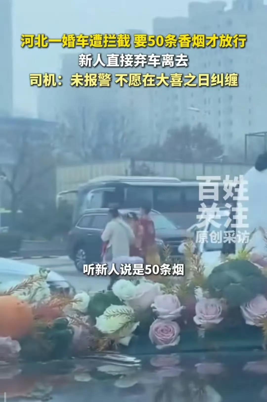 婚车被拦要50条烟?河北廊坊这对新人的婚礼太让人解气了!婚车刚到酒店停车场,就被