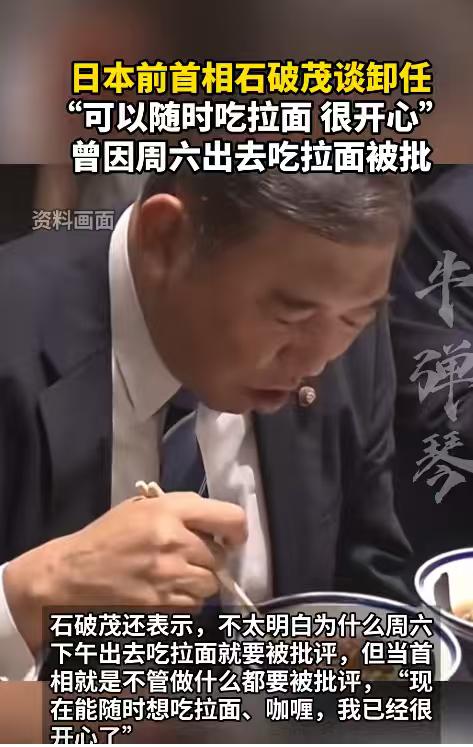 卸任首相的石破茂太开心了,他说,卸下首相重担,令他感到解脱。现在他可以随时出去吃拉面和咖喱,真的很开心。此前,石破茂辞职,很多人认为他是失败者。但恰恰相反,石破茂对此很开心,如释重负。如今高市早苗刚上台,可能觉得这个位子很好,过三个月或者是半年,到时候你再看她是否有现在的游刃有余了。从高市目前持续挑衅中方的做法来说,她其实是无脑的,下台的速度应该会更快!说到底,还是石破茂更通透!
