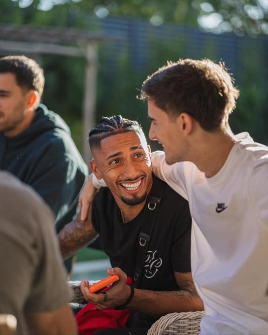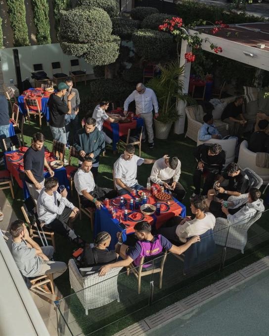 阿劳霍积极倡导这类团队活动,拉菲尼亚也在Instagram中分享了多张聚餐照片。我们可以看到阿劳霍与队友们以及包括理疗师在内的俱乐部员工围坐在餐桌旁,桌上铺着蓝红相间的桌布,彰显了对俱乐部的热爱。