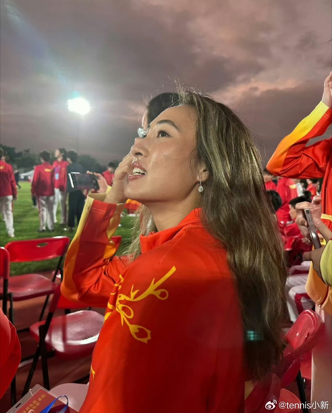 已经在外场候场了,坐等钦文今晚将在开幕式担任湖北代表团的旗手郑钦文担任湖北代表团