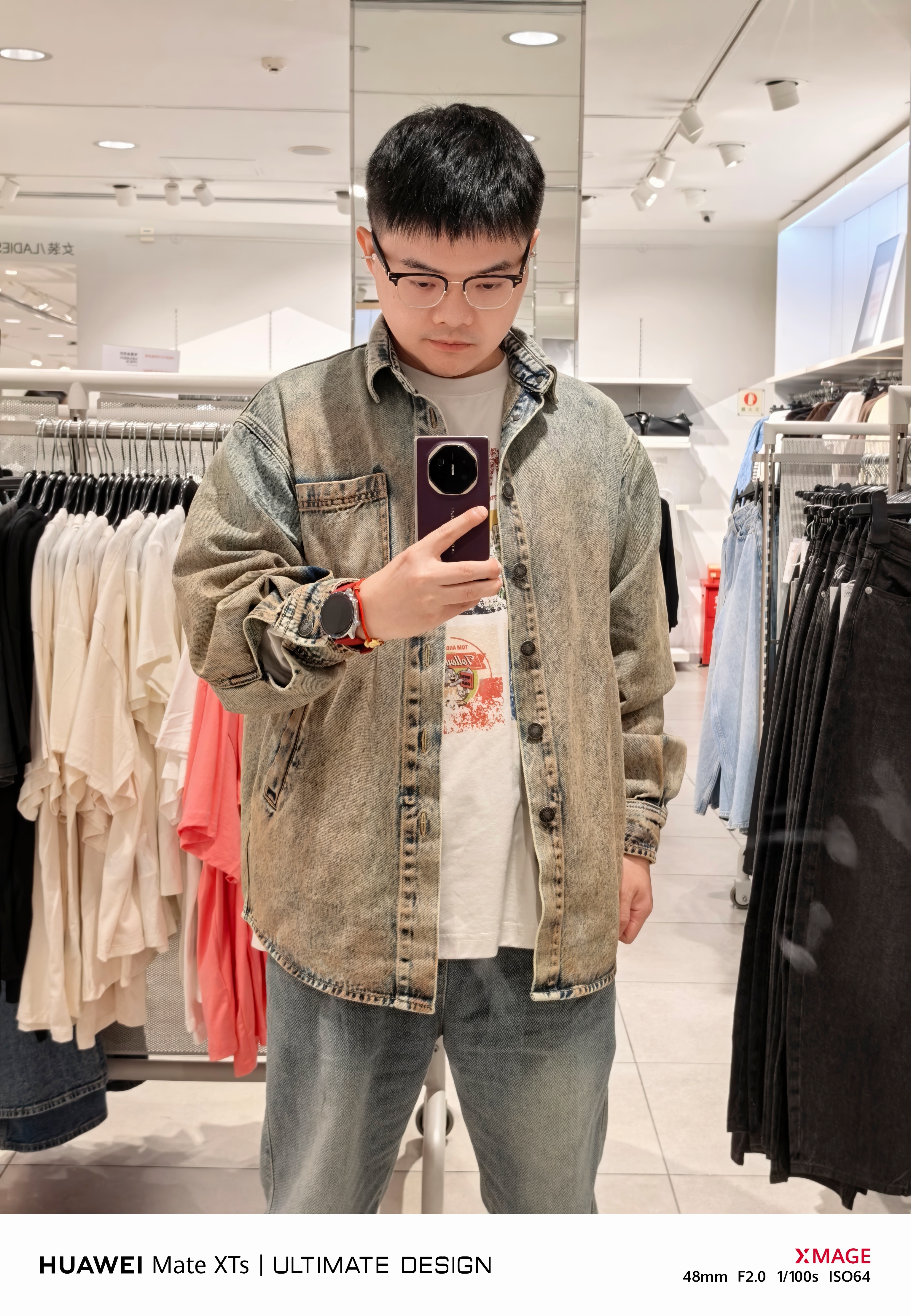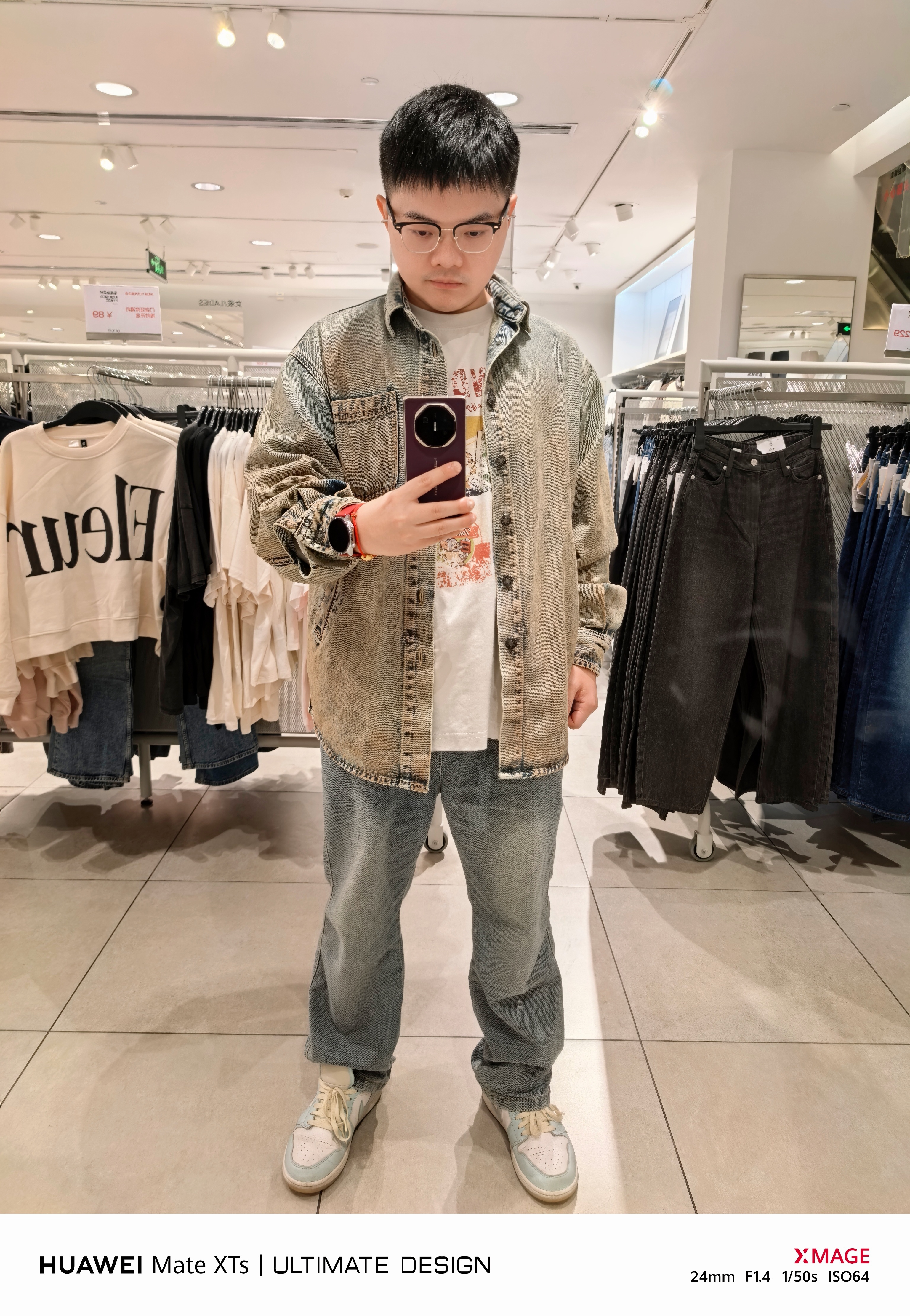 照片是我用我的华为Mate XTs 非凡大师,在H&M镜子前拍的,但衣服全部都是别的潮牌,我纯粹是觉得H&M光线好和镜子干净。[酷][酷]