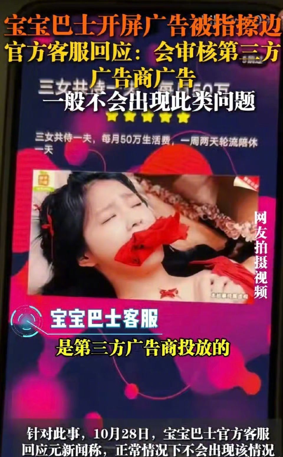 一是“宝宝巴士儿歌”app。作为一款儿童启蒙教育的知名品牌,打开app时,弹窗广告页面出现了擦边色情内容,非常辣眼睛。