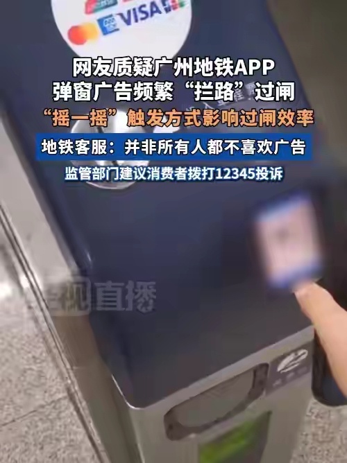 二是“广州地铁”app。乘车码页面频繁弹出广告,尤其那个利用手机陀螺仪开发的高灵敏度“摇一摇”触发功能,在早晚高峰的地铁闸机口,稍有晃动就跳转广告,严重影响过闸效率。
