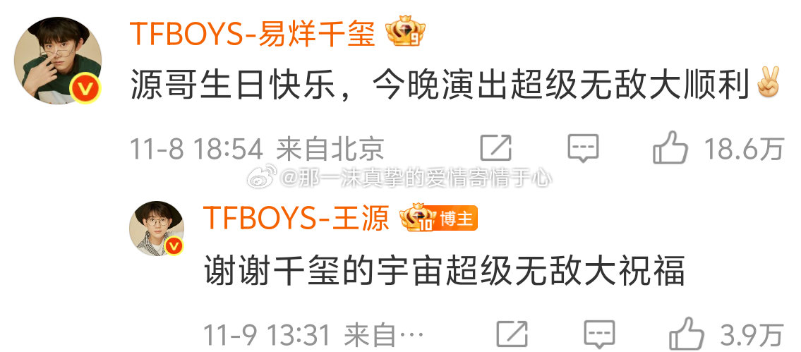 王源回复王俊凯易烊千玺祝福!一沫真挚的情话一沫真挚的情话[超话]