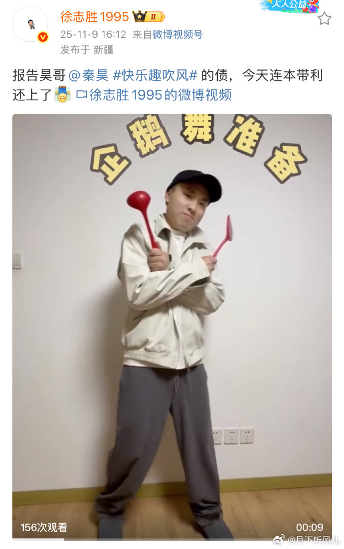 建议秦昊给徐志胜田嘉瑞陪个企鹅舞 《快乐趣吹风》第六期片尾超有趣,秦昊让徐志胜和田嘉瑞发博还安排跳舞。徐志胜的企鹅舞活像人形企鹅,田嘉瑞的Nobody甜到心都化了,惊喜感拉满!