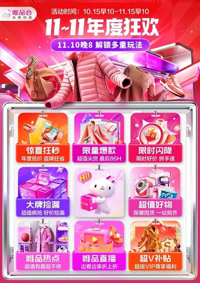 新快报讯记者郑志辉报道据特卖电商唯品会消息,唯品会11.11特卖狂欢节最后一波高潮终极狂欢盛典将于11月10日晚8点上线,这也将是唯品会11.11折扣力度最大的活动之一。