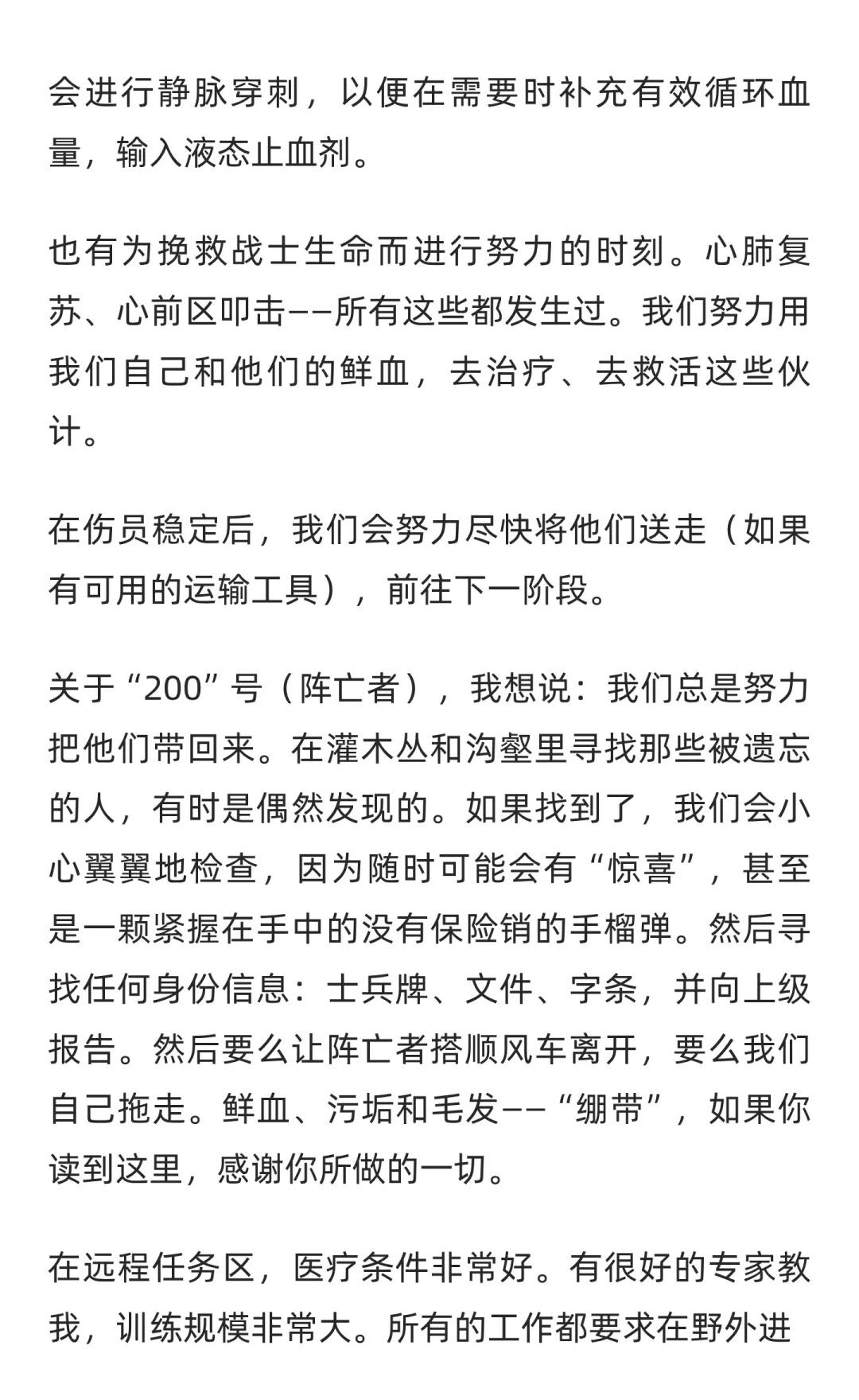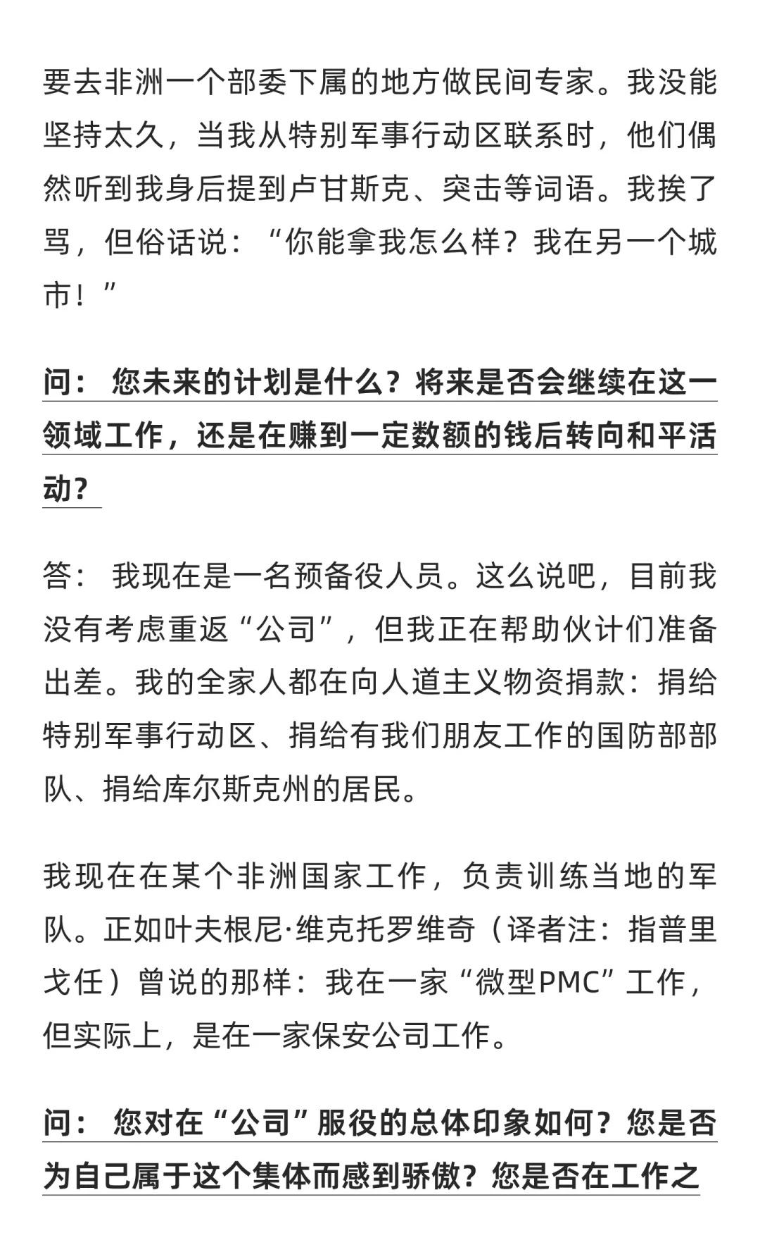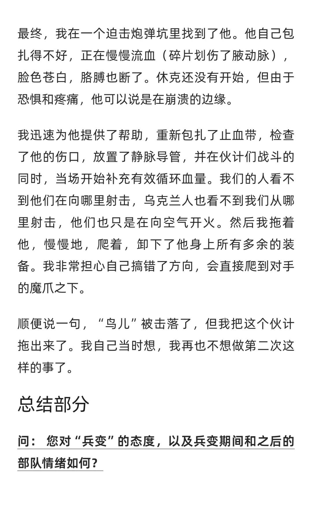 前瓦格纳“卫生员”访谈录-Part2 前瓦格纳PMC突击排医护教官“保罗”首次公开讲述他的服役生涯(翻译自dzen.ru) 💰 为钱而战? 他揭示了参战的动机、合同期限(6+或9+)与高额薪资。 🩺 战地医疗的残酷真相: 如何在两周内完成速成训练?高压下如何抢救“300号”(伤员)?“莫利基诺热”和前线后勤的真实挑战。 🛡️ 装备与管理: 从“Module-Monolith”防弹衣到缴获的乌军装备,PMC的补给与内部纪律(包括对“K项目人员”的独特管理)。 🎙️ 亲历者的思考: 如何看待突如其来的“兵变”?以及他目前在非洲“微型PMC”的新工作。 因文字内容较多,本采访分两部分发出,上半部分见我之前笔记 军事 俄乌战争 PMC 雇佣兵