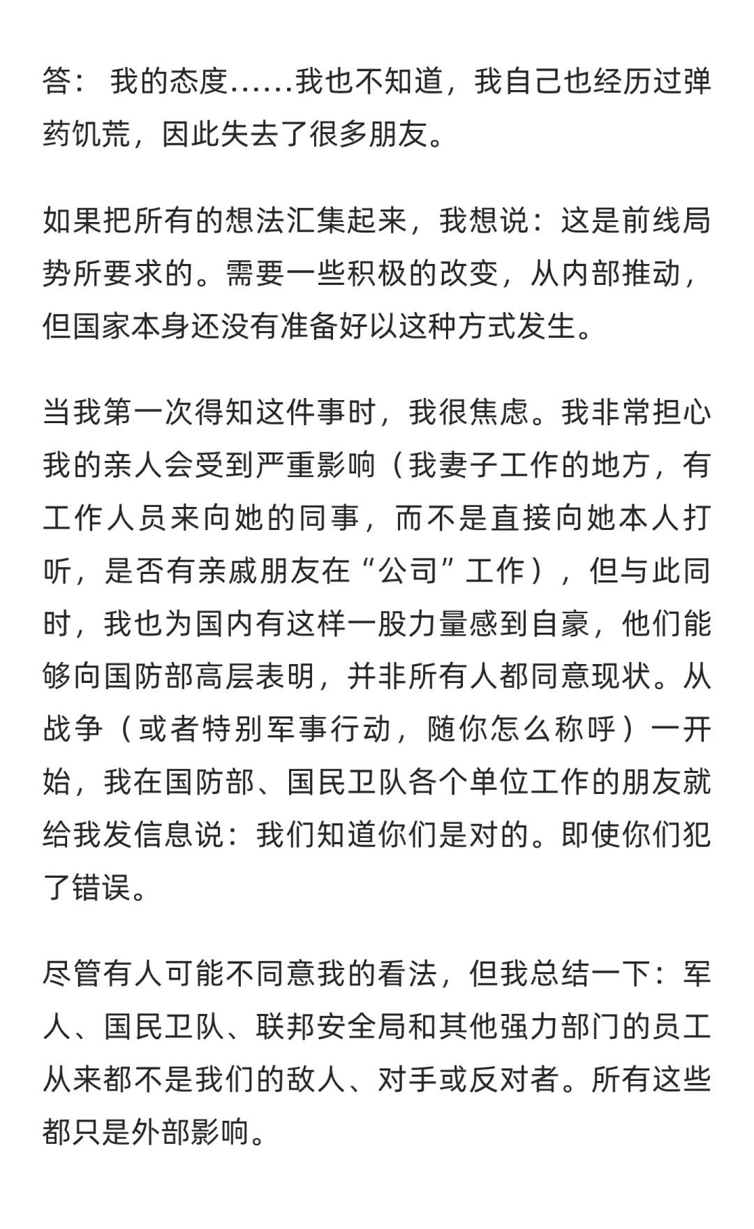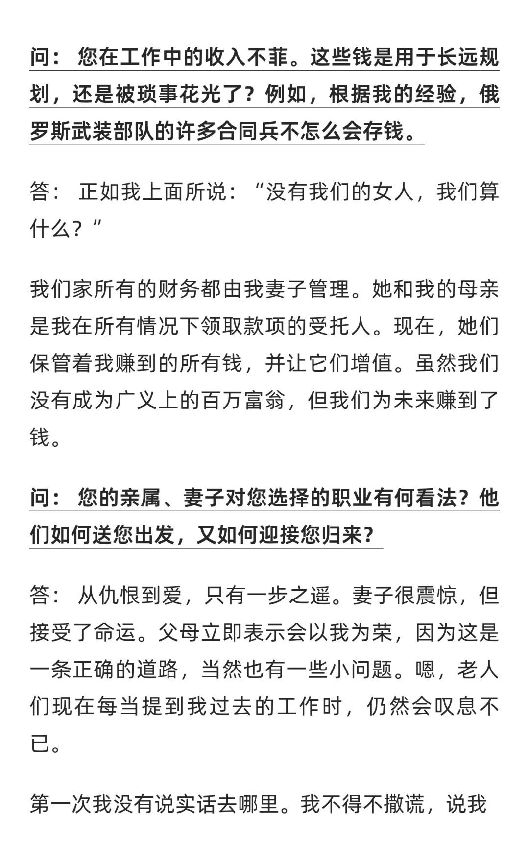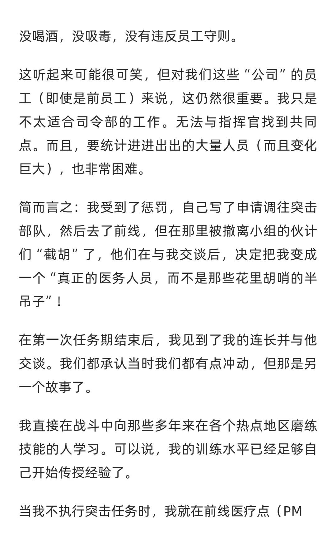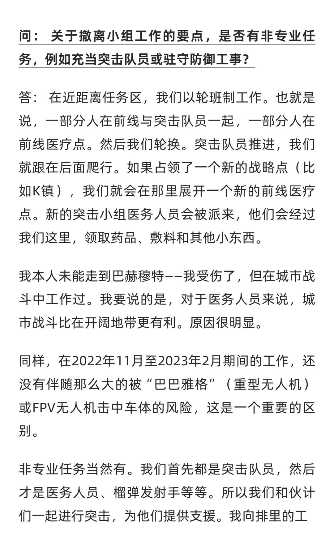 前瓦格纳“卫生员”访谈录-Part2 前瓦格纳PMC突击排医护教官“保罗”首次公开讲述他的服役生涯(翻译自dzen.ru) 💰 为钱而战? 他揭示了参战的动机、合同期限(6+或9+)与高额薪资。 🩺 战地医疗的残酷真相: 如何在两周内完成速成训练?高压下如何抢救“300号”(伤员)?“莫利基诺热”和前线后勤的真实挑战。 🛡️ 装备与管理: 从“Module-Monolith”防弹衣到缴获的乌军装备,PMC的补给与内部纪律(包括对“K项目人员”的独特管理)。 🎙️ 亲历者的思考: 如何看待突如其来的“兵变”?以及他目前在非洲“微型PMC”的新工作。 因文字内容较多,本采访分两部分发出,上半部分见我之前笔记 军事 俄乌战争 PMC 雇佣兵