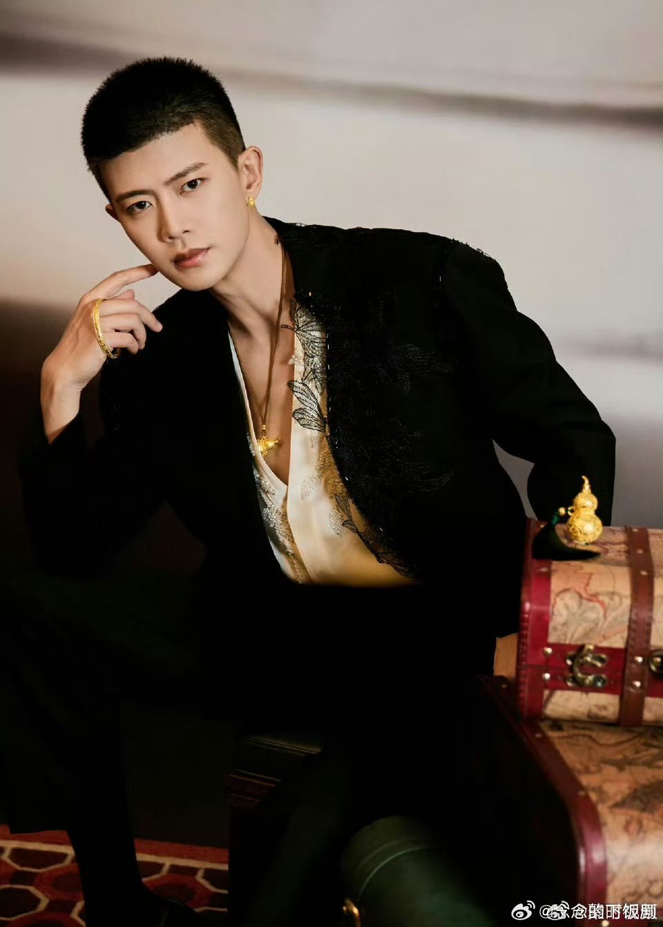 寸头任嘉伦出现在某活动现场,一袭黑色西装,身上戴满黄金,这是给哪个黄金商代言呢?